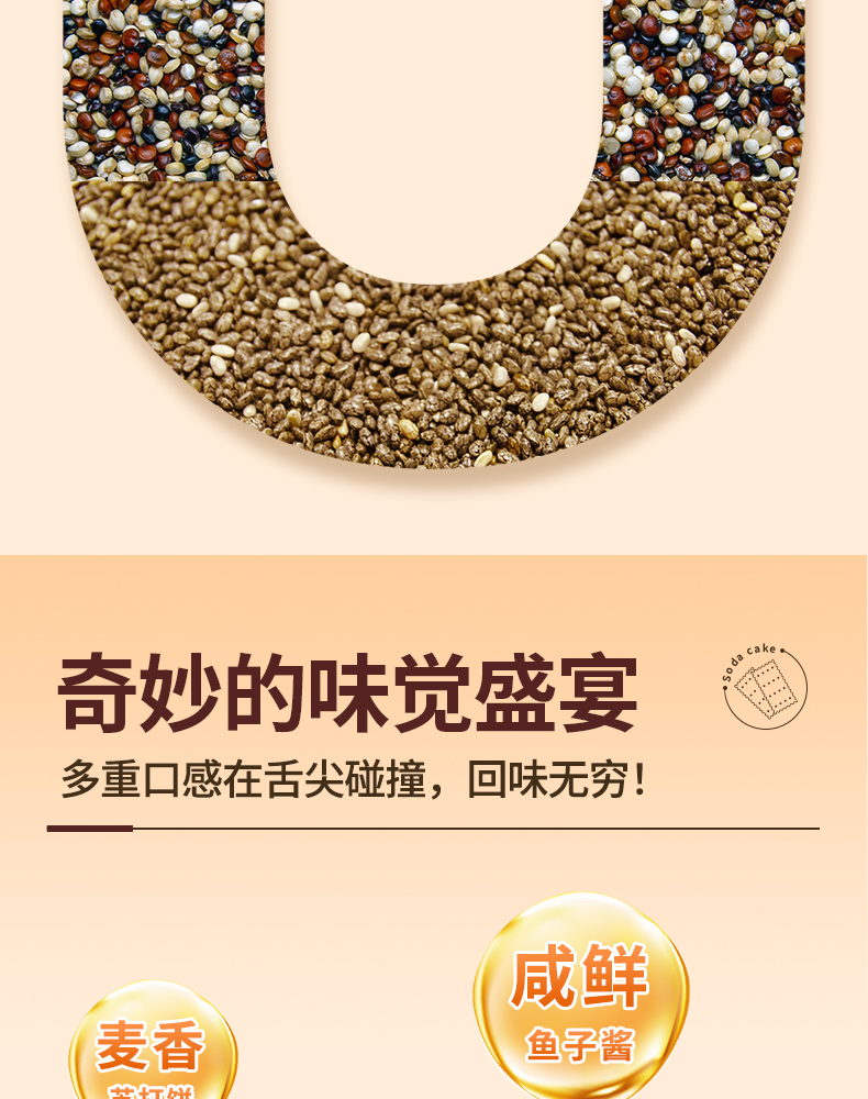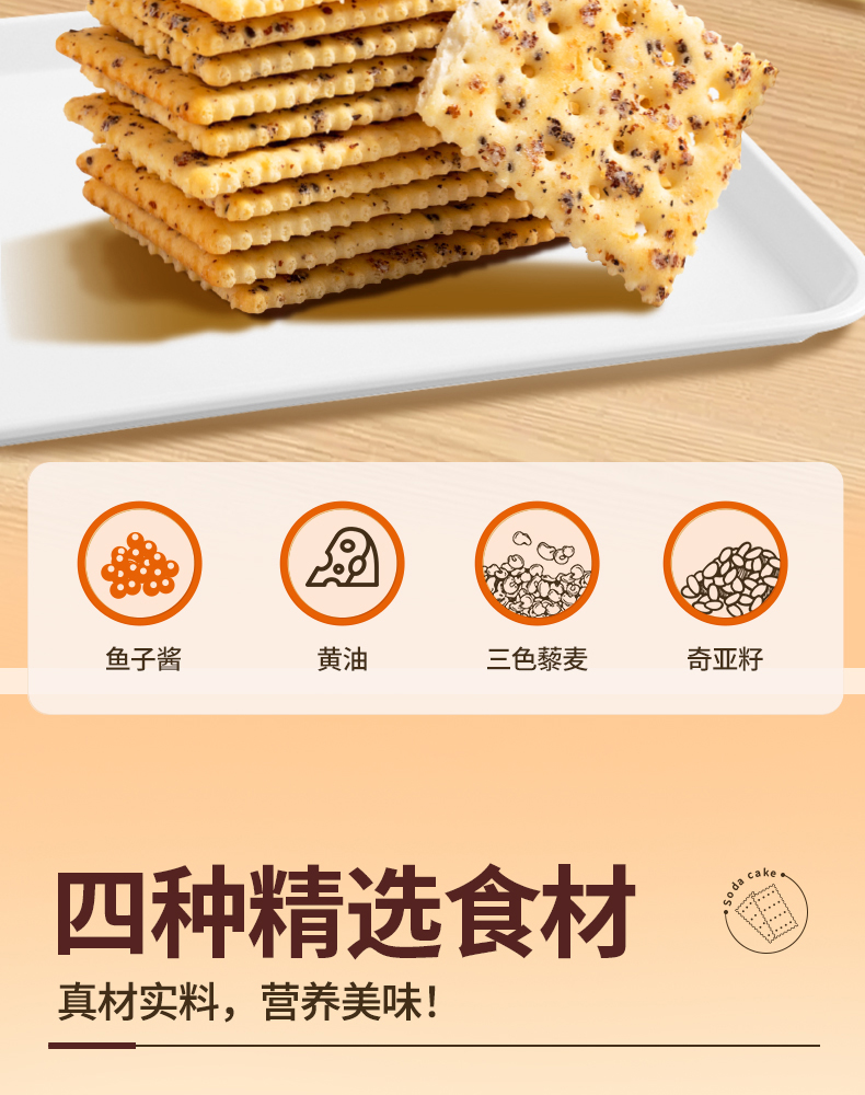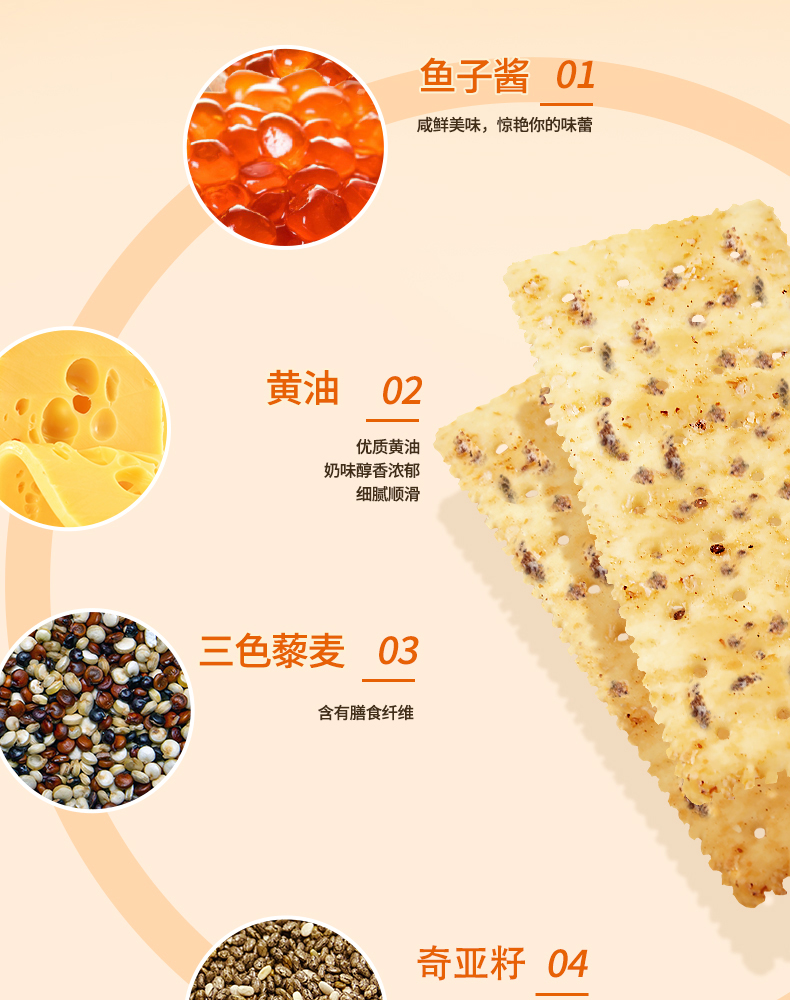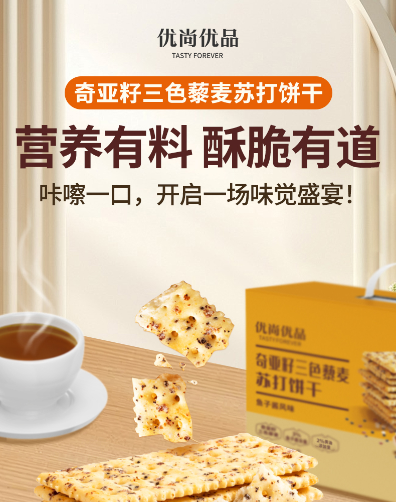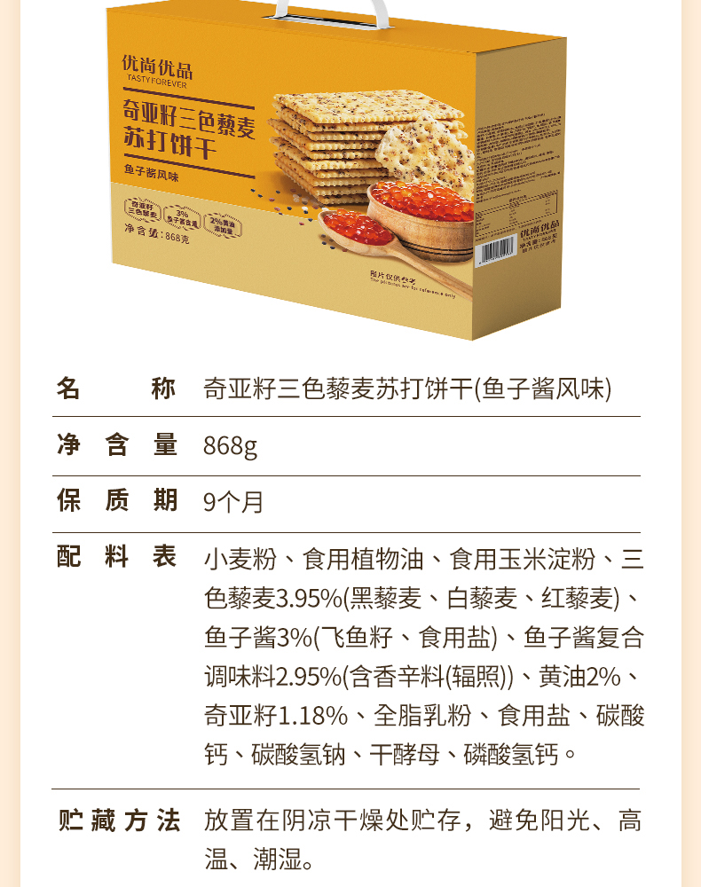 优尚优品 奇亚籽三色藜麦苏打饼 868g 鱼子酱风味 黄色(单位:盒)