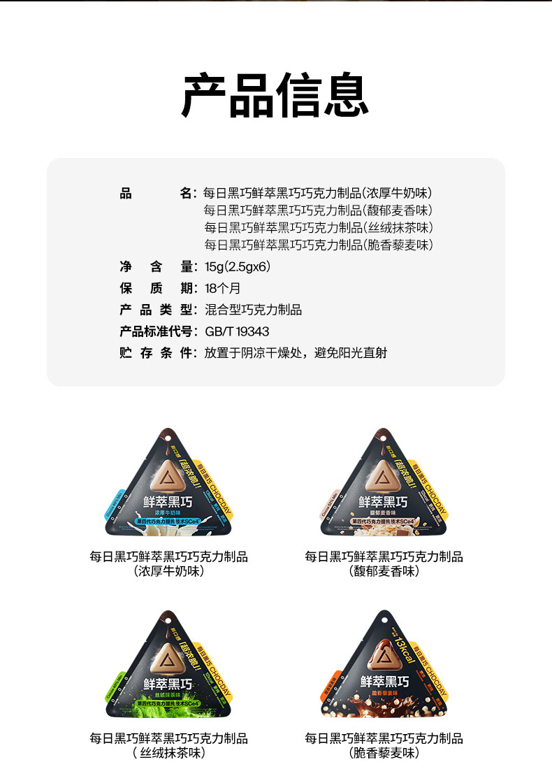 每日黑巧 鲜萃黑巧巧克力制品 )15g(6颗装)*10袋 脆香藜麦味 咖啡色(单位:袋)