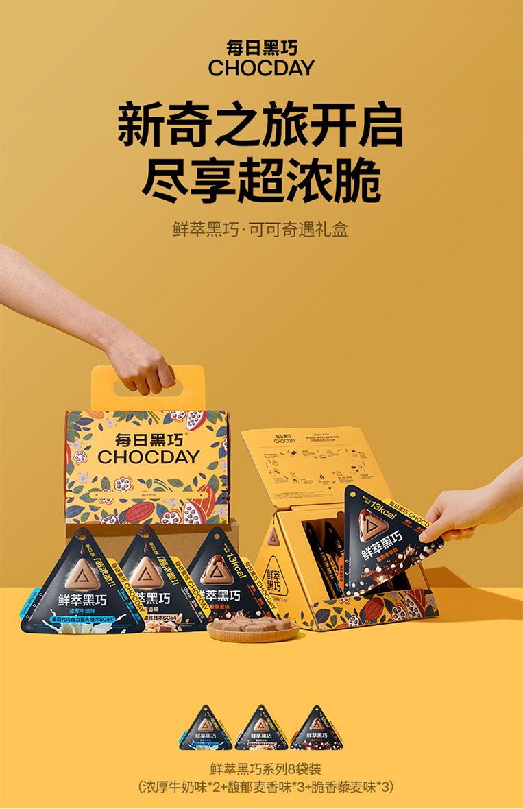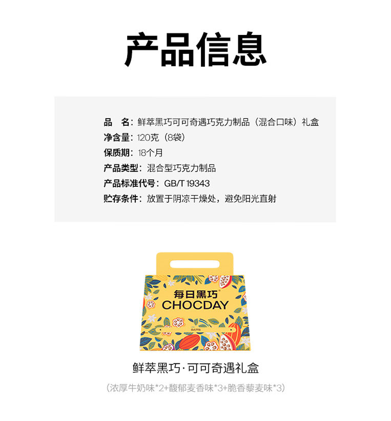 每日黑巧 鲜萃黑巧巧克力制品 120g 8袋装拎手礼盒 黄色(单位:袋)
