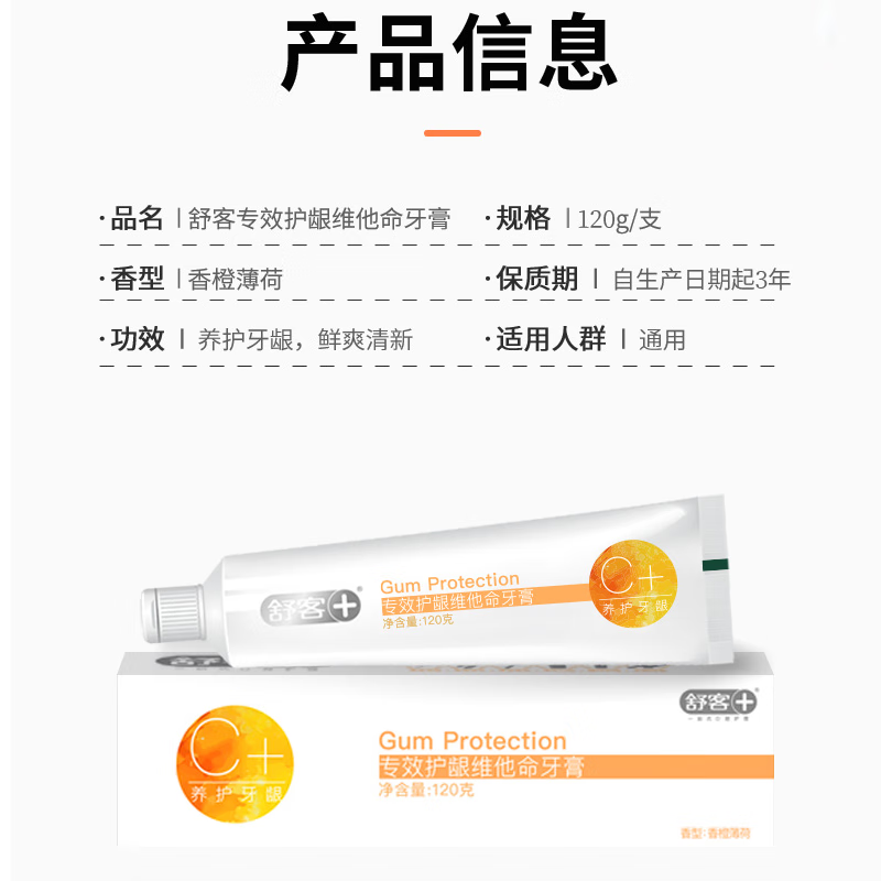 舒客 牙膏 专效护龈维他命 120g*3 混色(单位:组)
