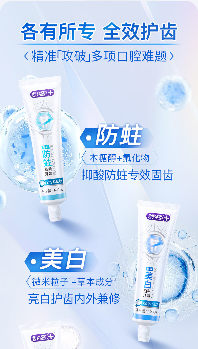 舒客 牙膏 专效美白植萃 120克*3 混色(单位:组)