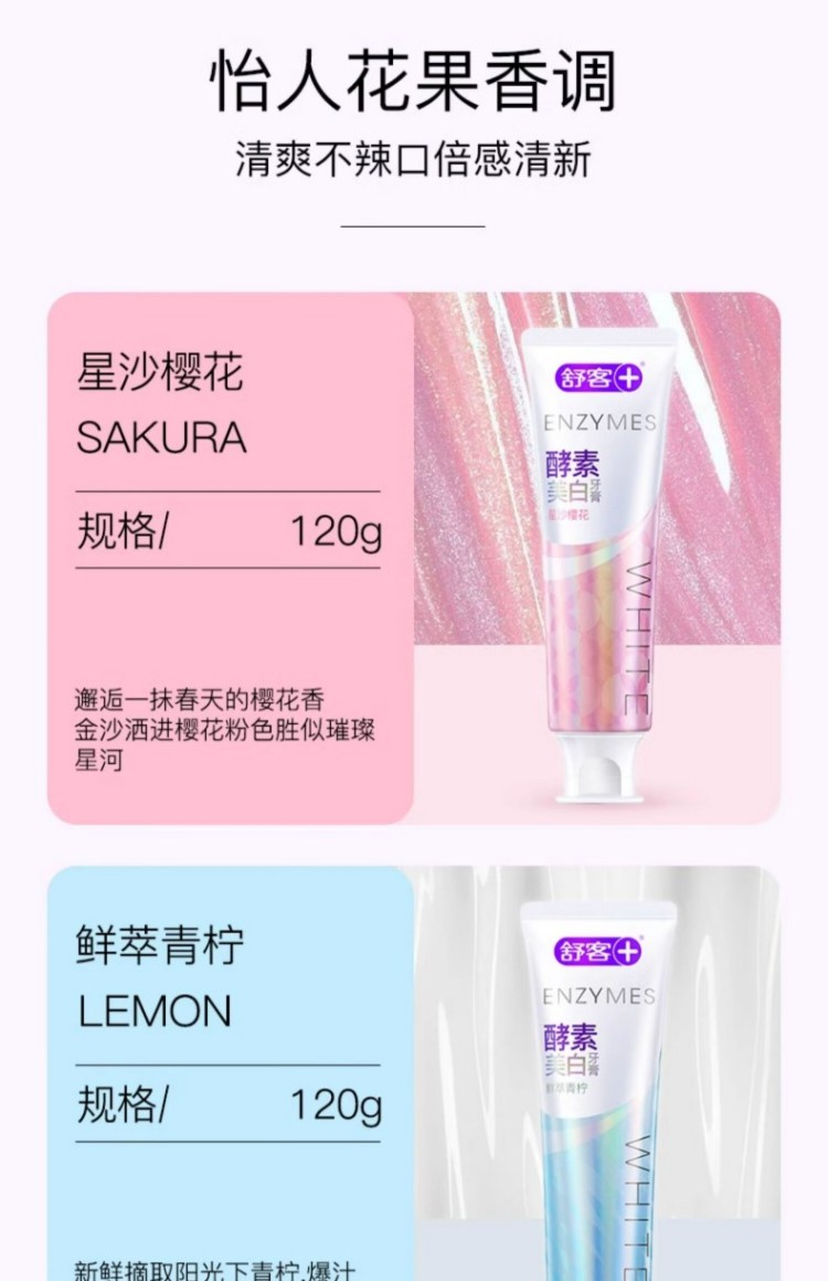舒客 牙膏 美白酵素光泽 120g*3 混色(单位:组)