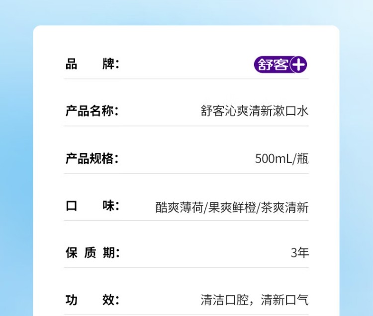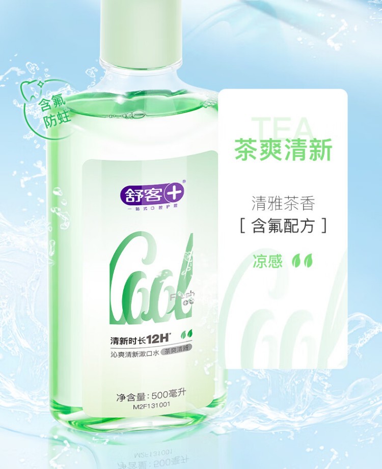舒客 漱口水 清新口气温和不辣0酒精清雅茶香 500ml*2 绿色(单位:瓶)