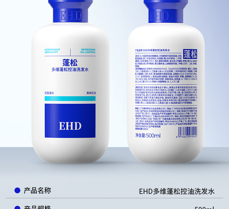 EHD 洗发水 控油蓬松 500ml 本白色(单位:瓶)