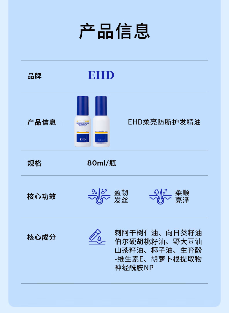 EHD 护发精油 柔亮防断 80ml 白色(单位:瓶)