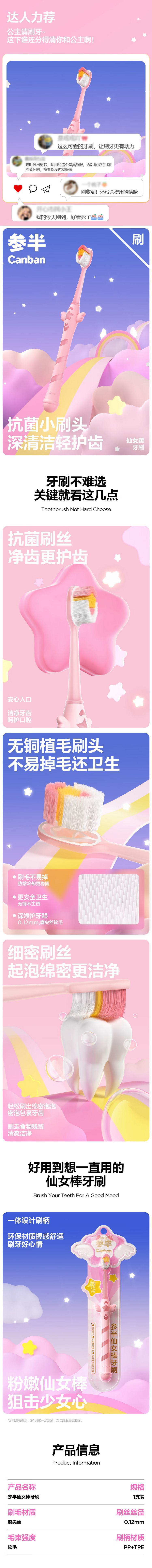 参半(NYSCPS) 仙女棒 牙刷 单支 粉色(单位:支)