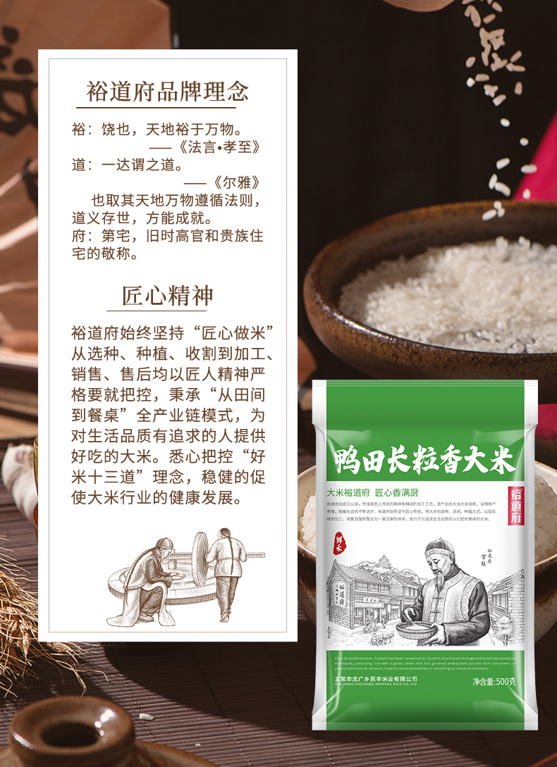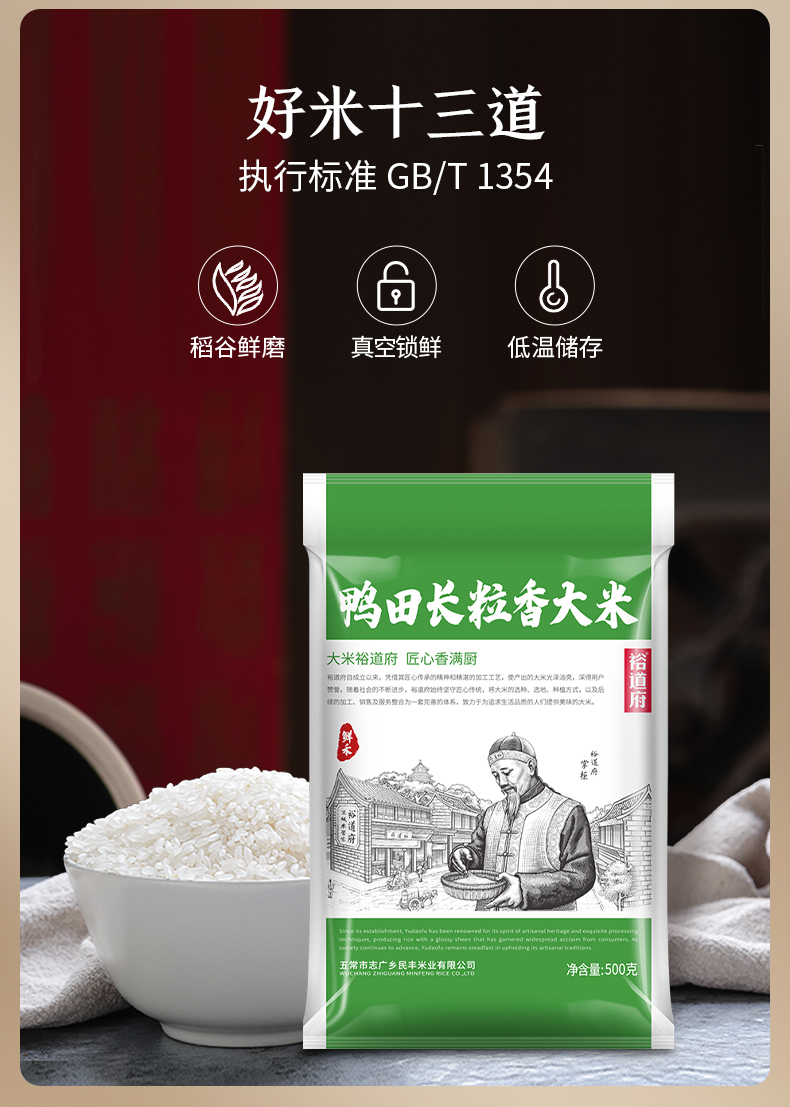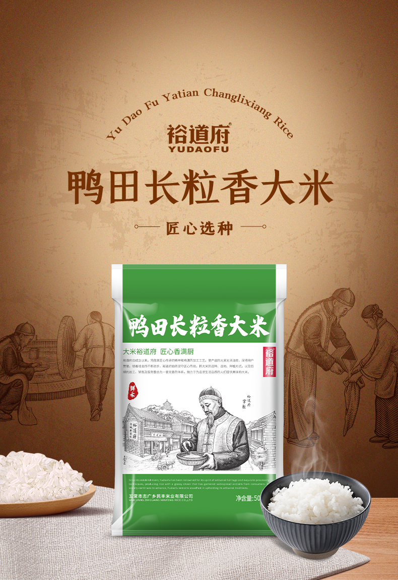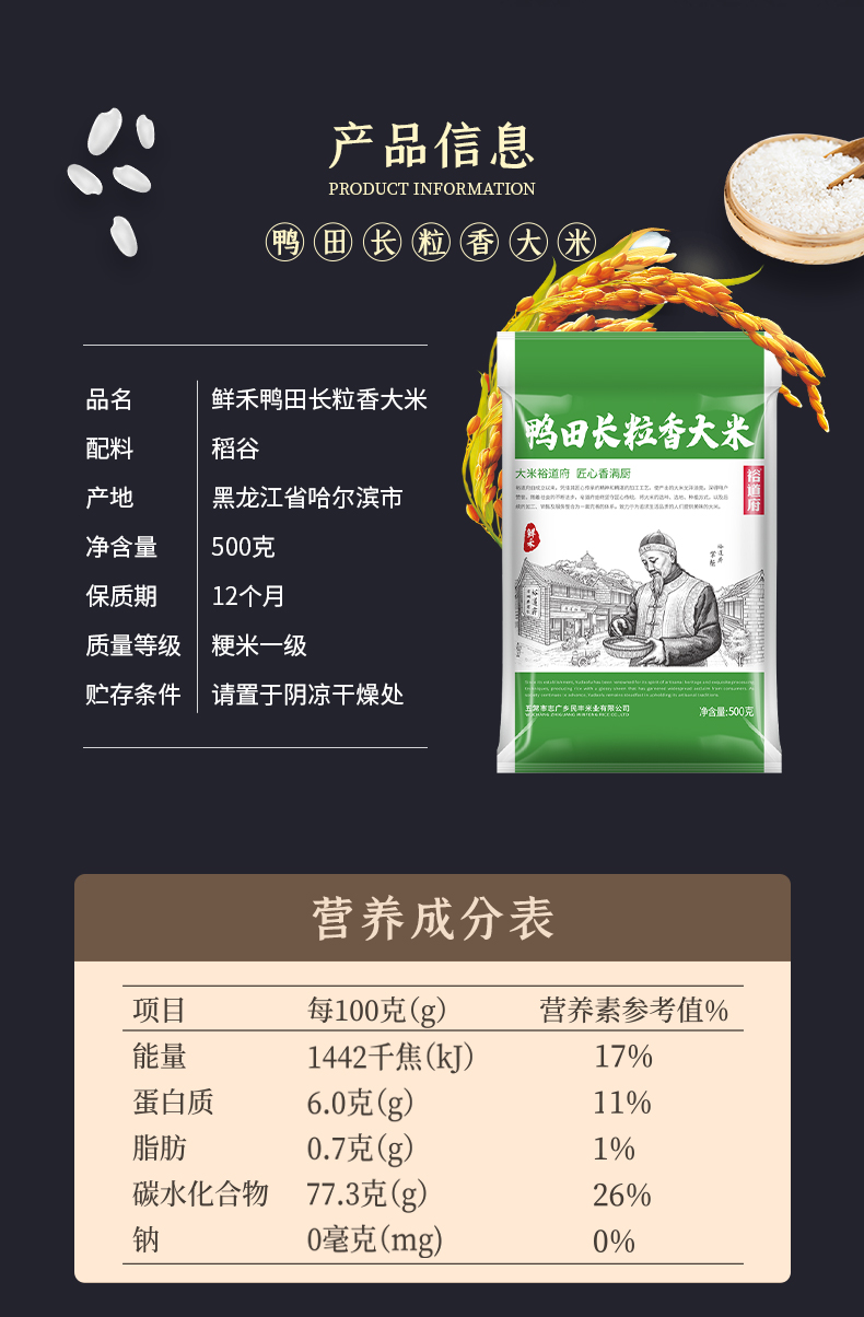 裕道府 鲜禾鸭田 长粒香大米 500g 绿色(单位:袋)