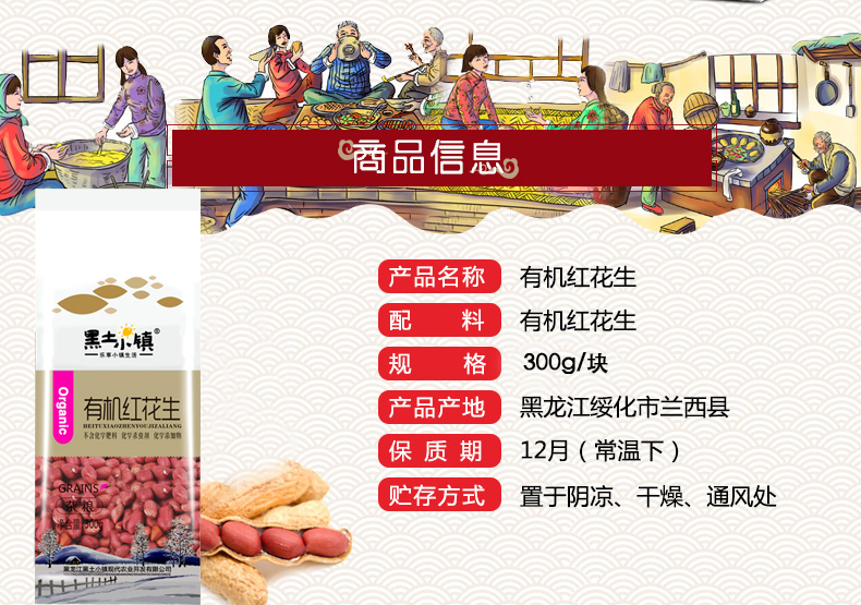 黑土小镇 有机红花生 五谷杂粮 300g 混色(单位:袋)