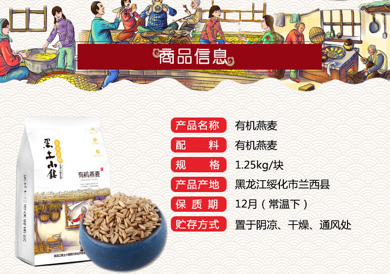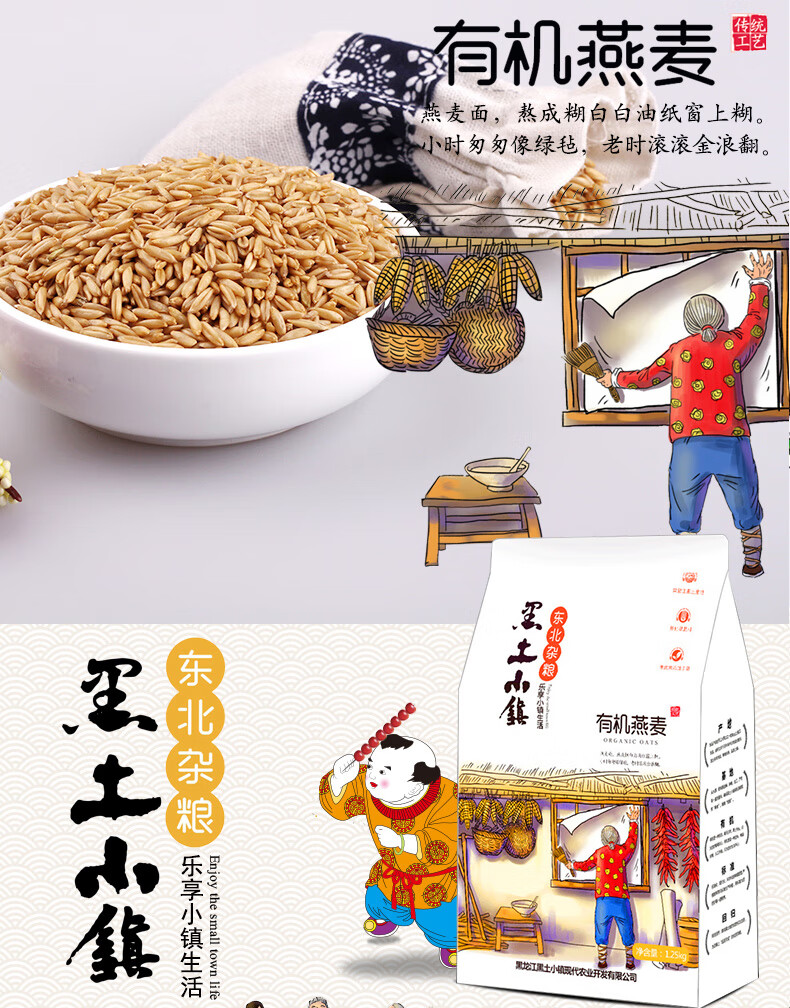 黑土小镇 有机燕麦米 五谷杂粮 1.25kg 混色(单位:袋)