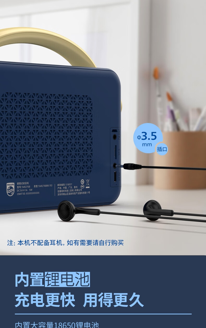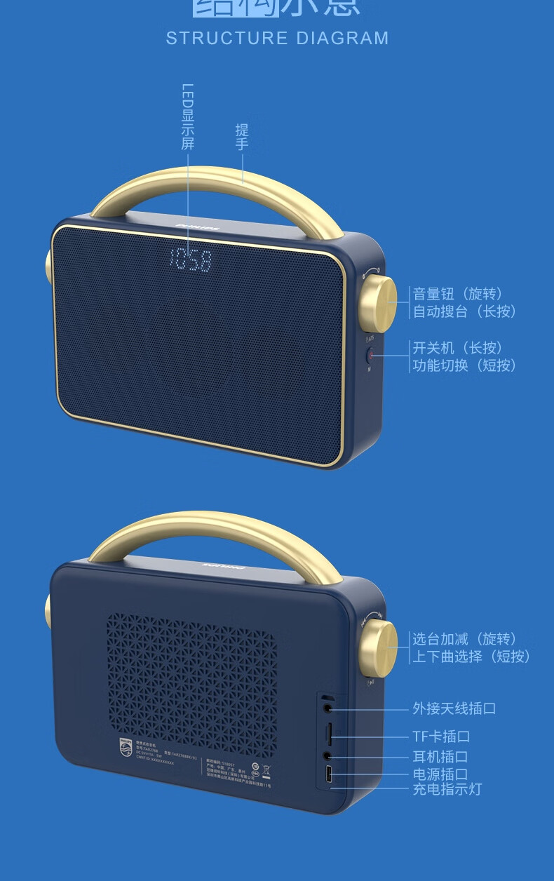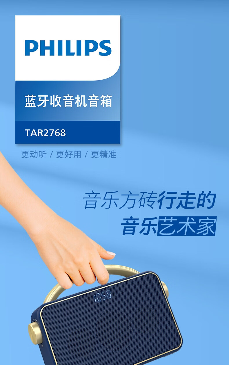 飞利浦(PHILIPS) 飞利浦蓝牙收音机音箱 TAR2768 重量:约554g(不含天线) 蓝色(单位:个)