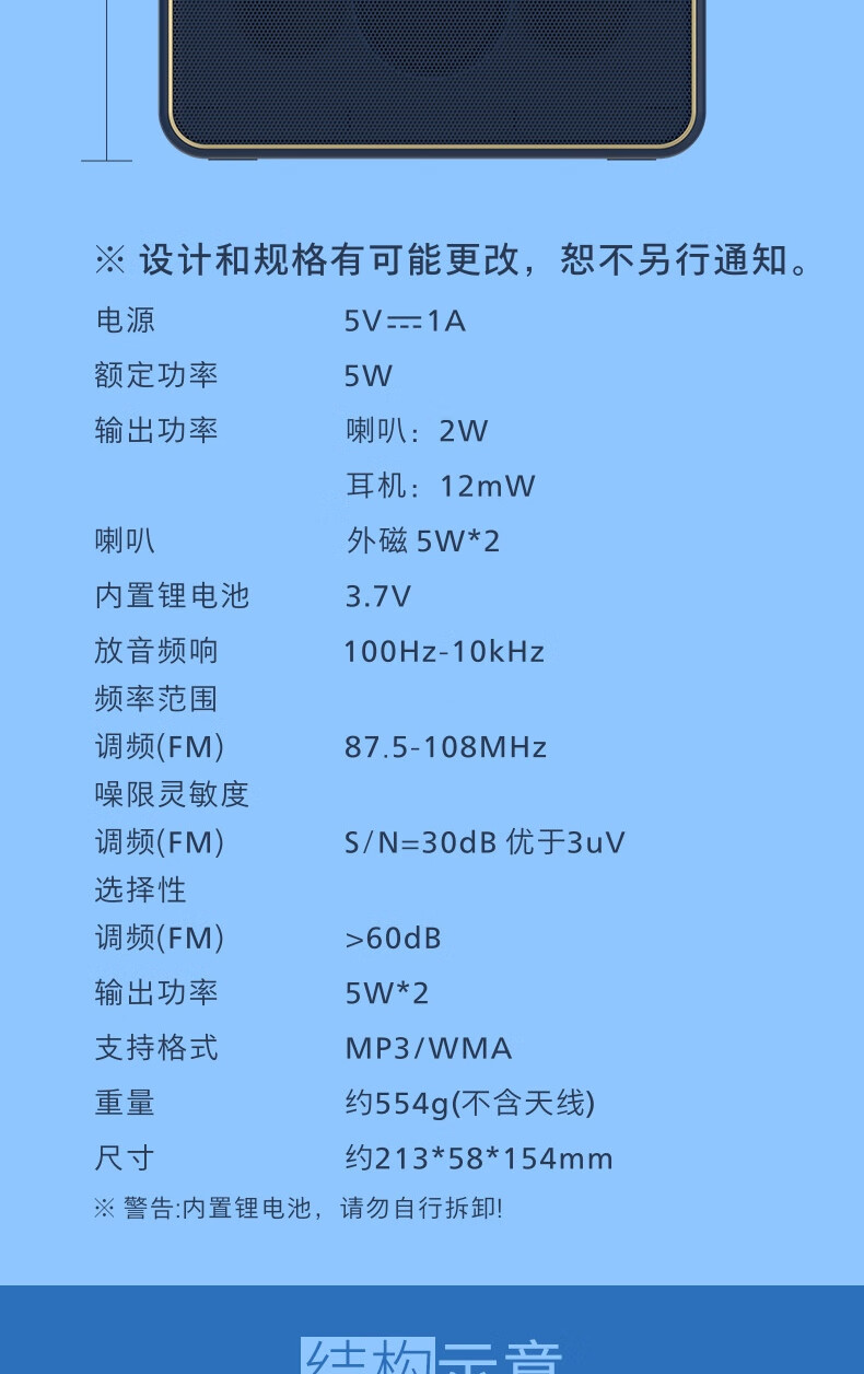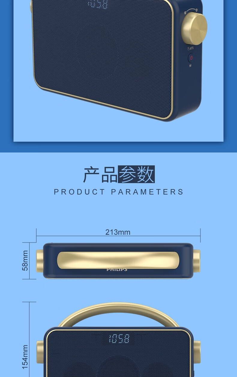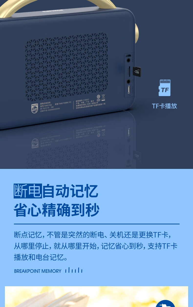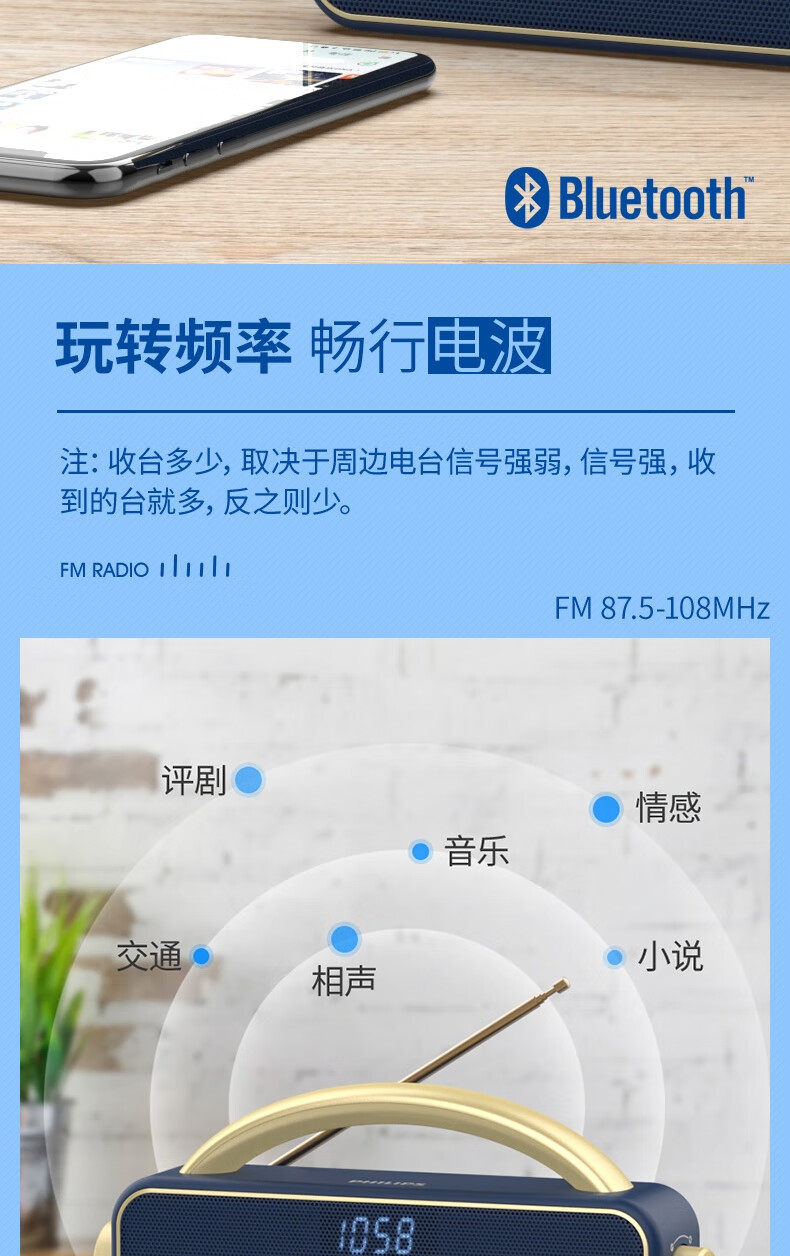 飞利浦(PHILIPS) 飞利浦蓝牙收音机音箱 TAR2768 重量:约554g(不含天线) 蓝色(单位:个)