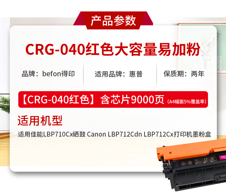 得印CRG-040大容量硒鼓适用佳能LBP710Cx LBP712Cdn LBP712Cx单位:支 红色