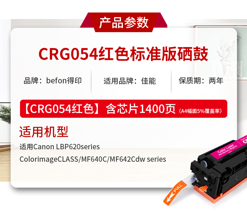 得印 CRG-054硒鼓红色 适用佳能mf643cdw LBP621Cw LBP623Cdn MF641Cw MF642cdw MF645Cx墨盒含芯片 红色