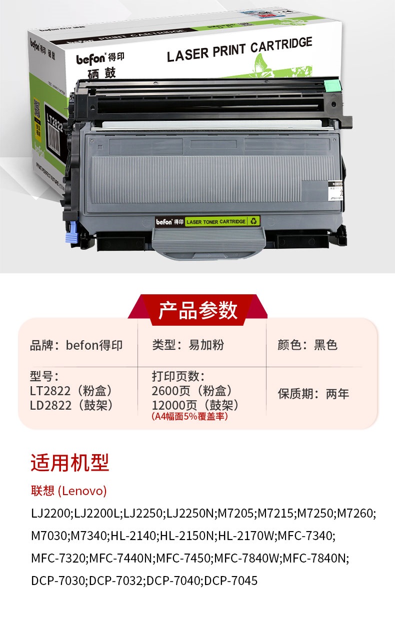得印LD2822硒鼓+墨粉盒套装适用联想LJ2200L/2250N/M7205/M7215 单位:套 黑色