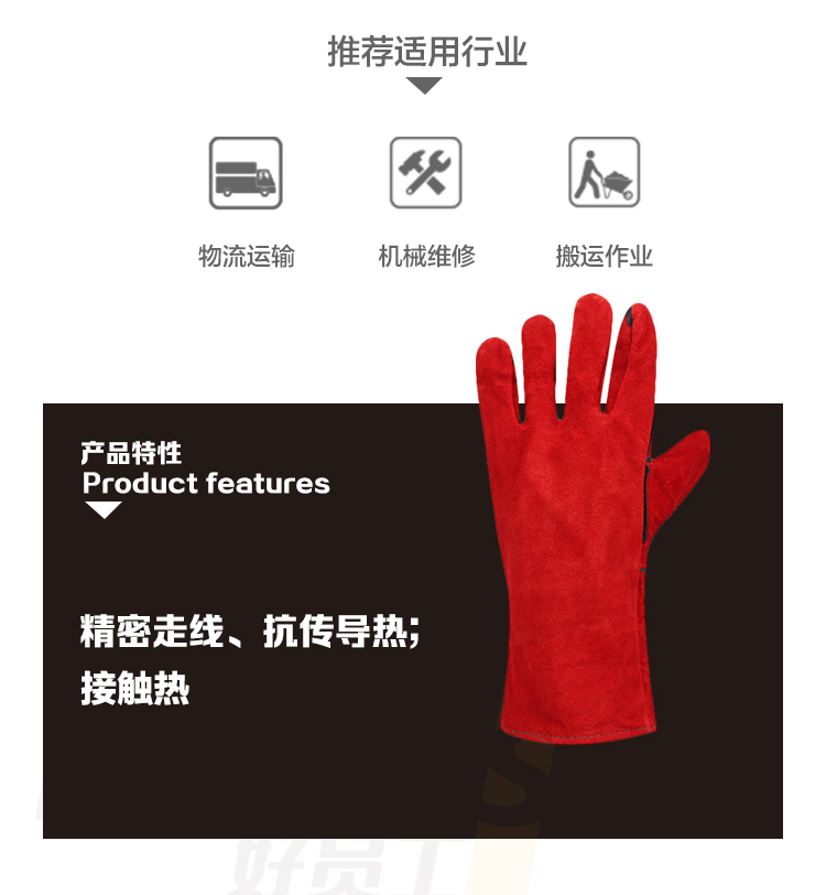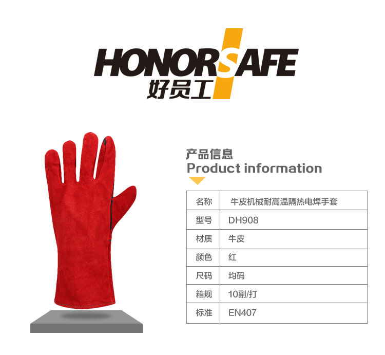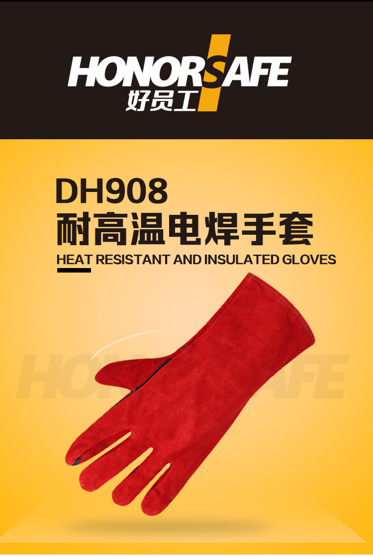 好员工 牛皮电焊手套 DH908 单位:双 红色