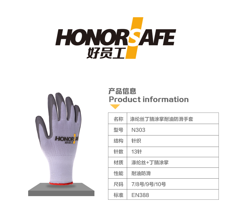 好员工 13针白涤纶灰丁腈 N303 120双起订 灰色