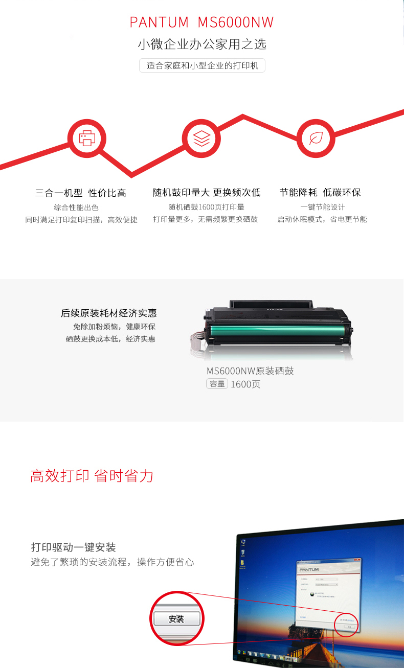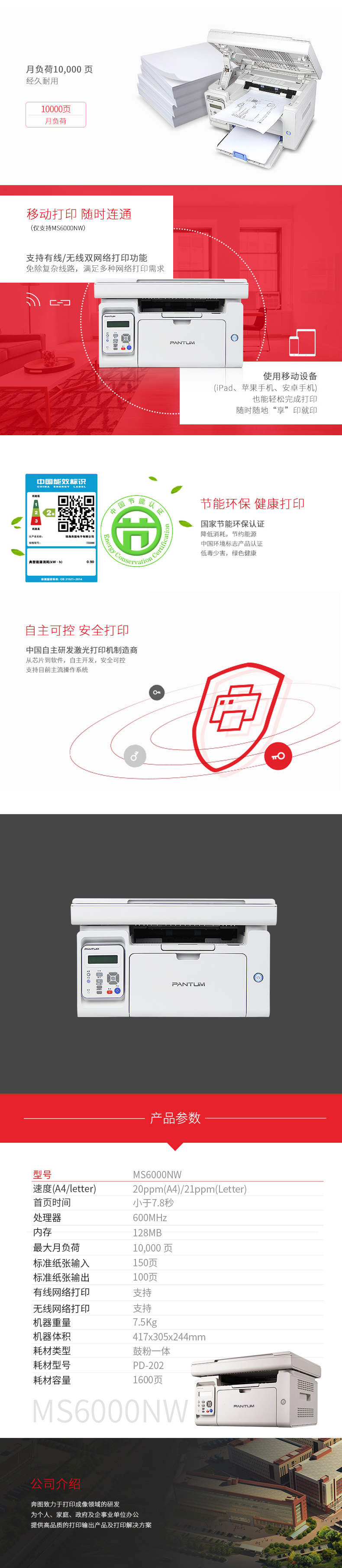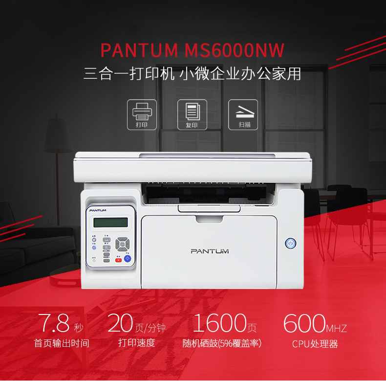 奔图(Pantum) MS6000NW 黑白多功能一体机(打印/复印/扫描) 白色