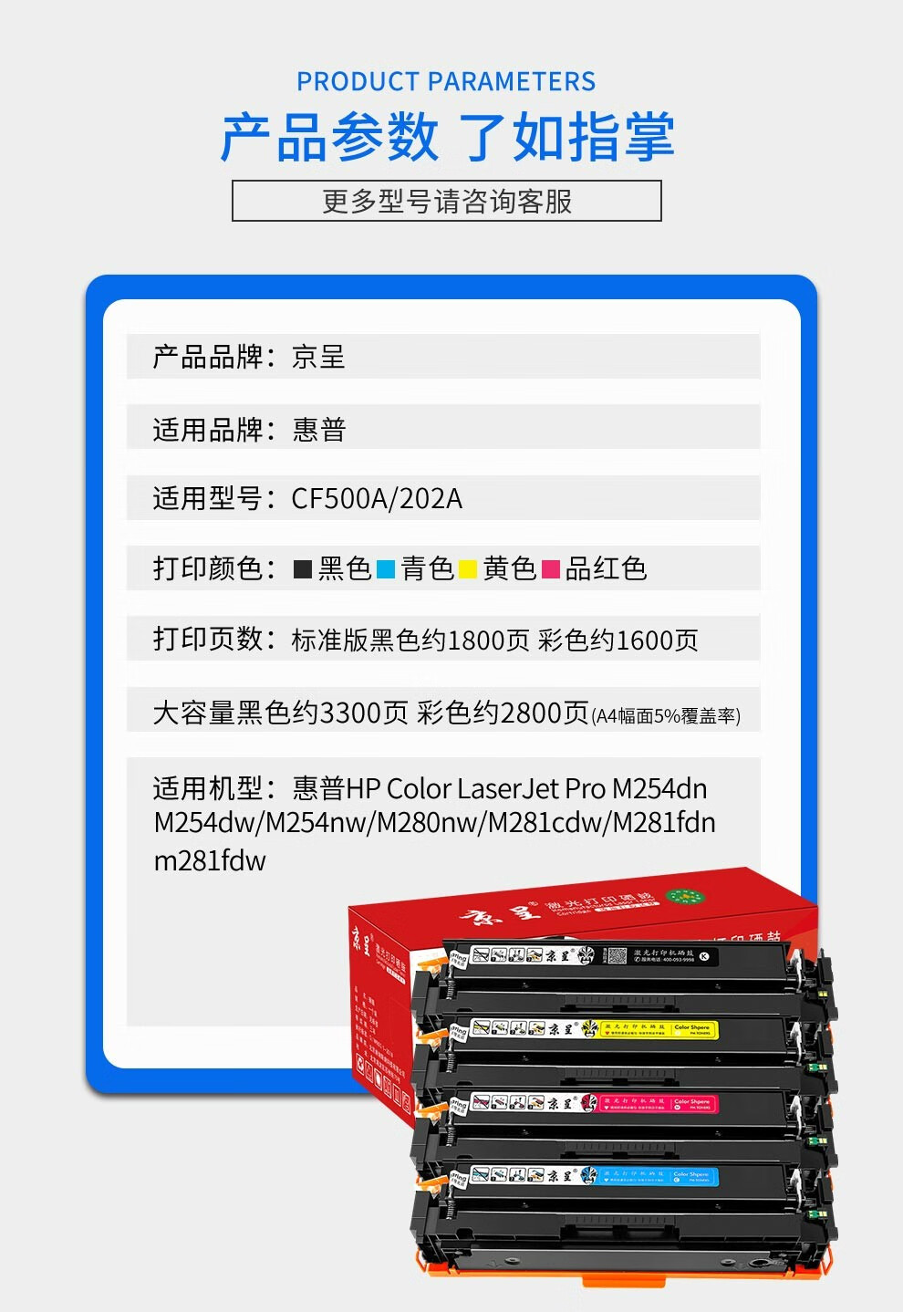 京呈202A硒鼓适用惠普m281fdw硒鼓cf500a m254dw硒鼓 m254dn打印机粉盒墨盒 单位:套 碳粉四色套装