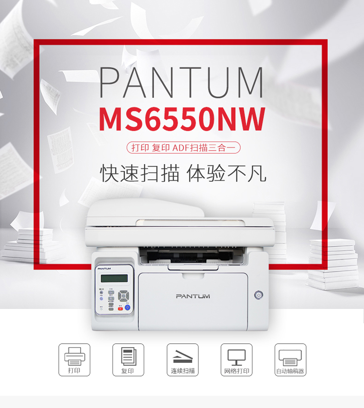 奔图(Pantum) MS6550NW 黑白多功能一体机(打印/复印/扫描 白色