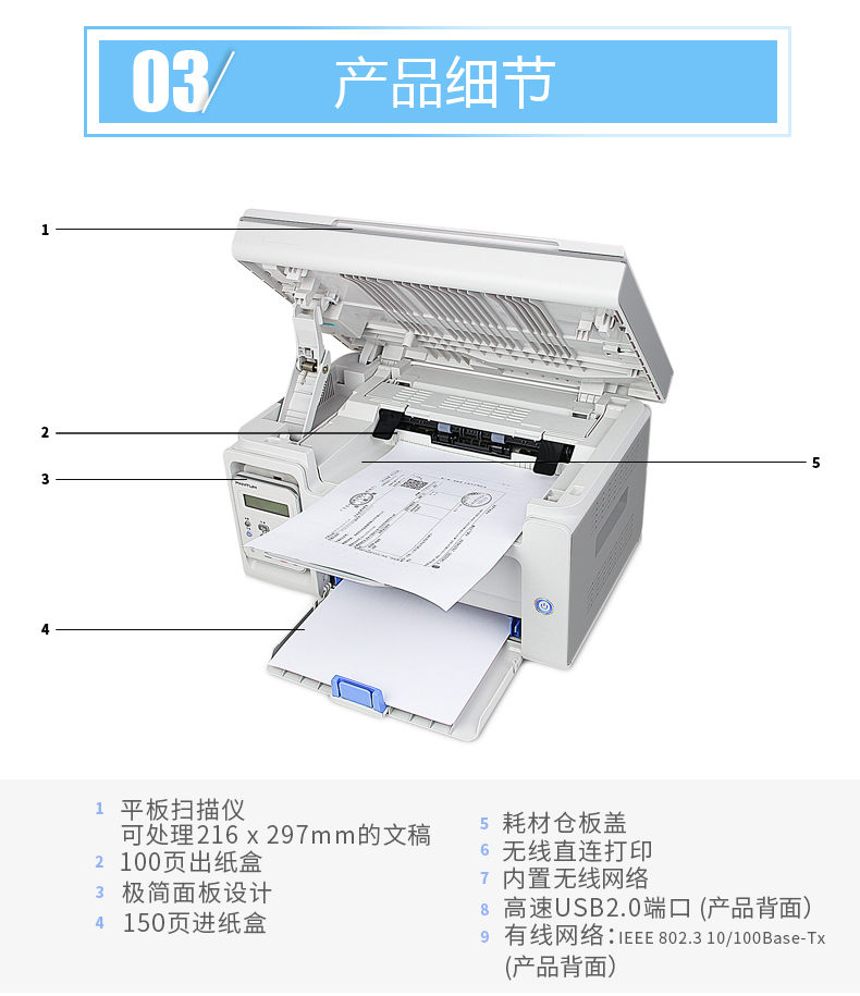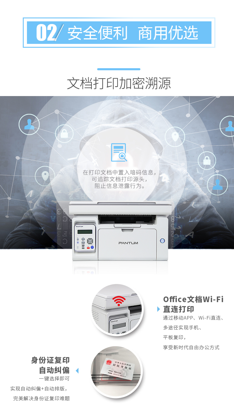 奔图(Pantum) M6535NW 商业黑白多功能一体机(打印/复印/扫描) 白色
