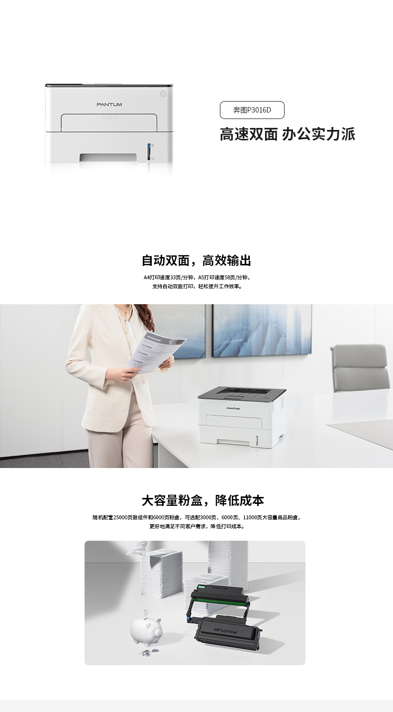奔图 PANTUM P3016D 黑白激光 自动双面 单功能打印机 白色