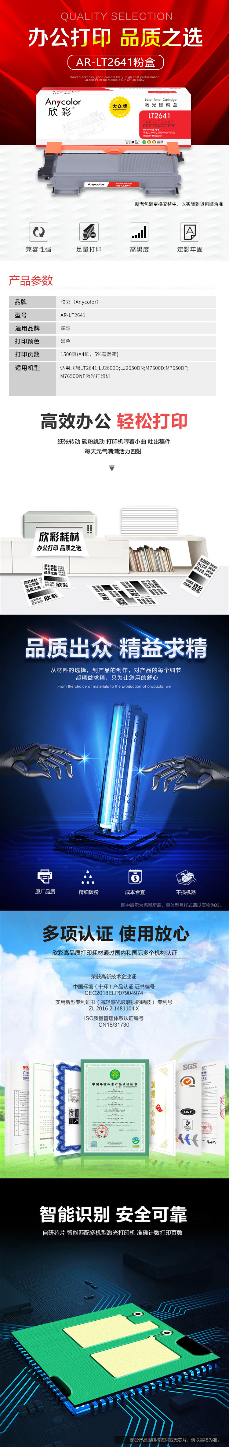 欣彩(Anycolor) AR-LT2641 1500页 适用联想 LJ2600D 粉盒 1.00 只/支 (计价单位:支) 黑色