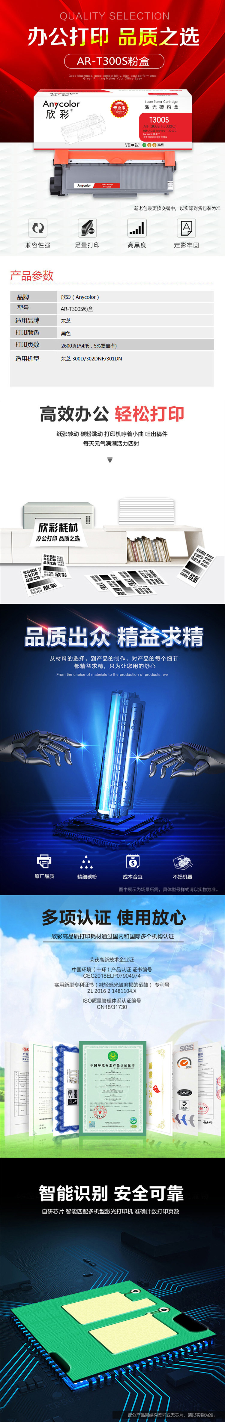 欣彩AR-T300S粉盒专业版 适用东芝T-3003C 300D 302DNF 301DN 通用T-3004 T-3005打印机 单位:支 起订量1支 黑色