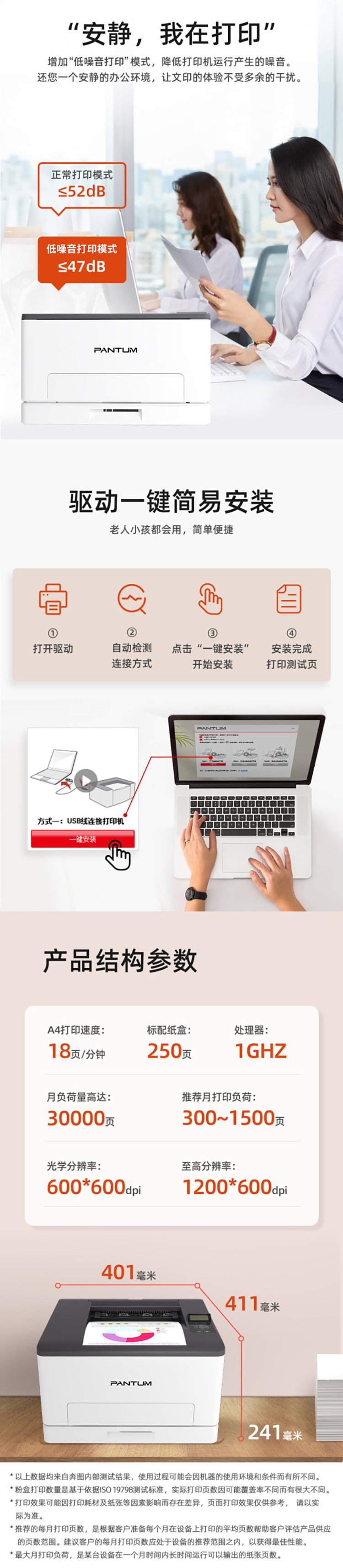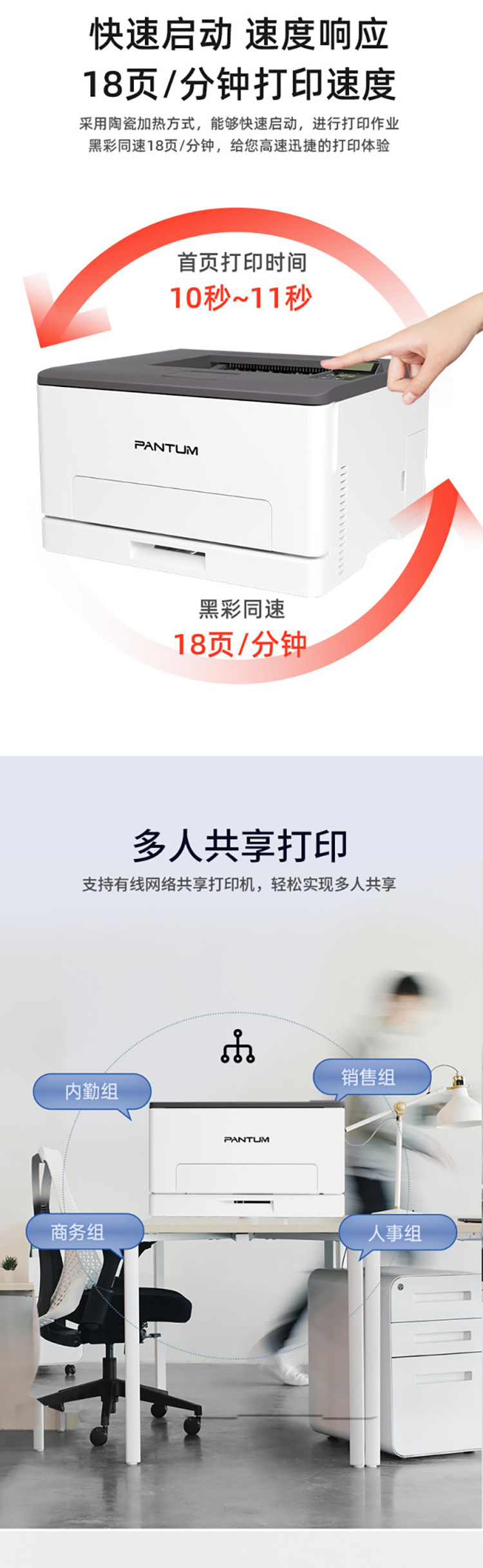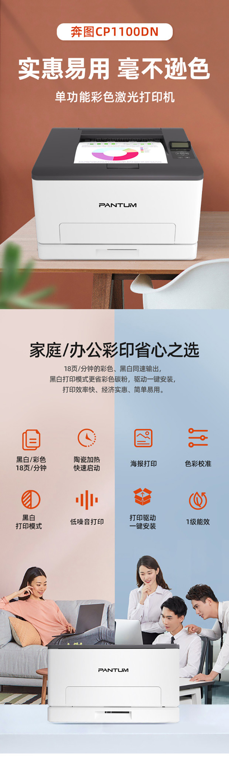 奔图(Pantum)CP1100DN A4彩色激光单功能打印机 双面打印 有线网络 白色