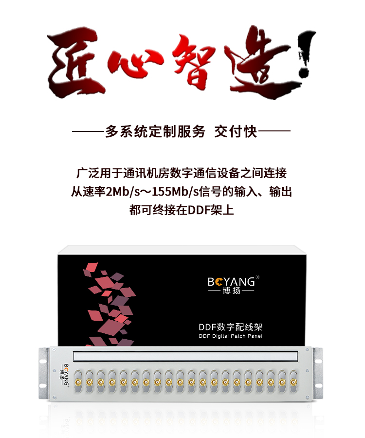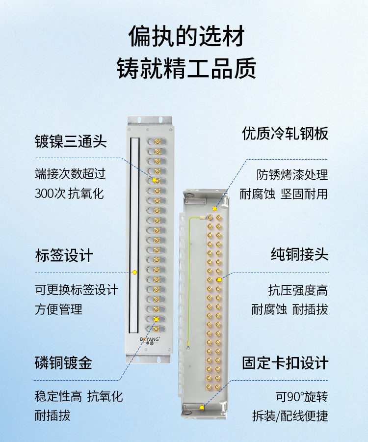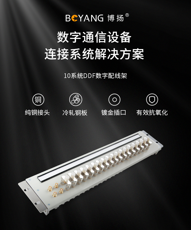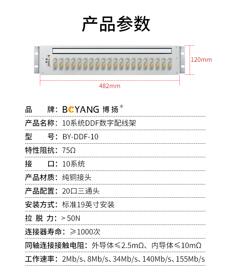博扬 10系统DDF数字配线架19英寸 西门子端子单元板含20口三通头 2M两兆E1同轴电缆接头终端 白色