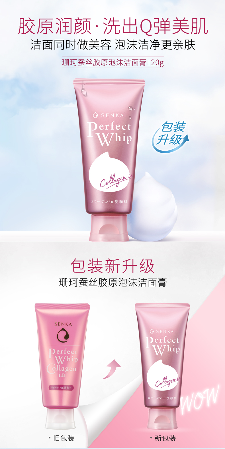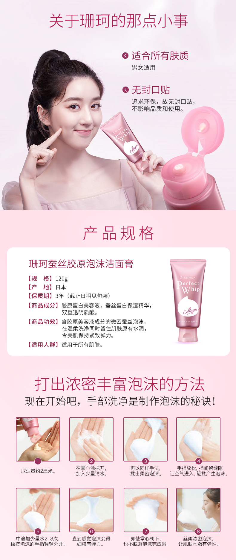 资生堂珊珂滋润泡沫洁面膏120g 粉色