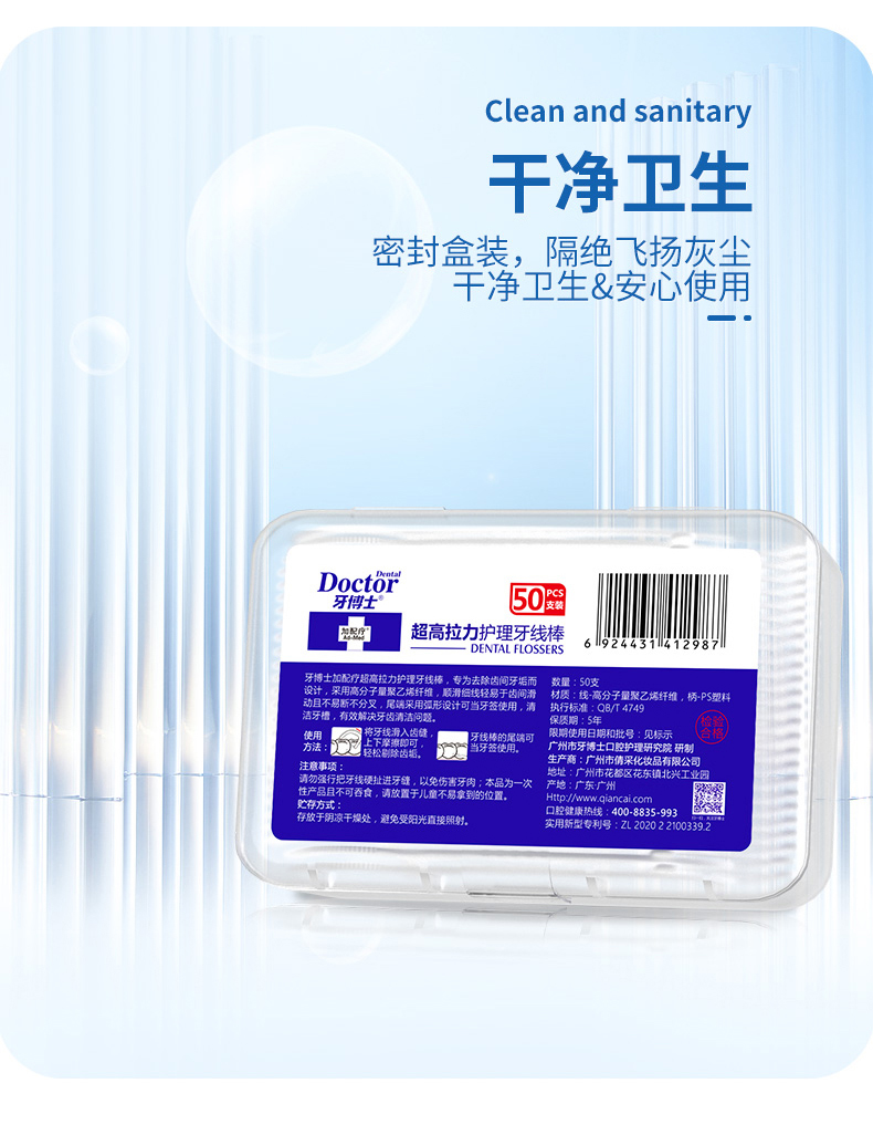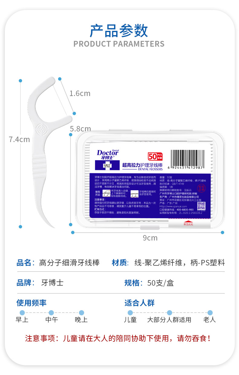 牙博士超高拉力牙线棒*1盒 牙线棒50支/盒*1盒