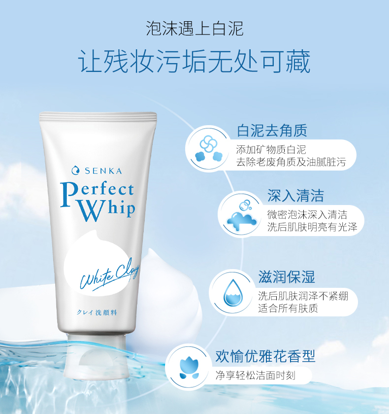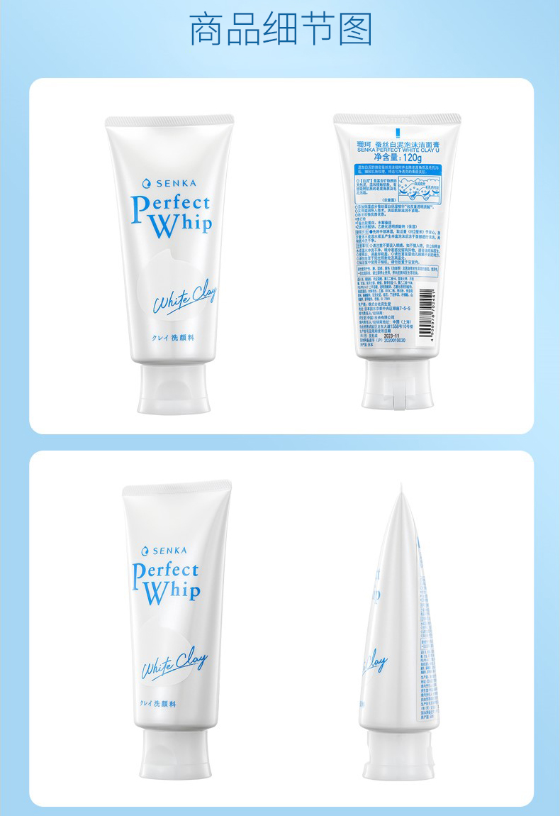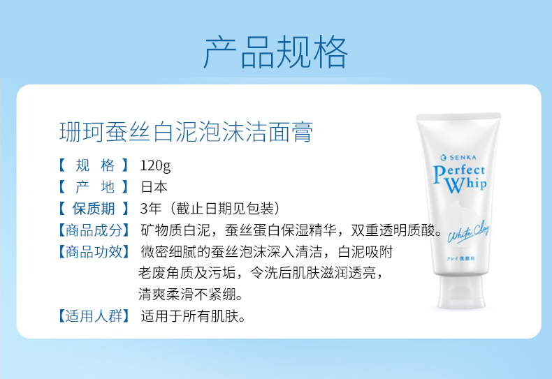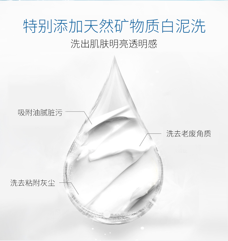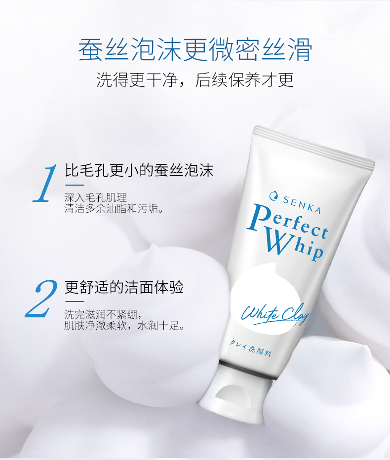 珊珂白泥泡沫洗面奶男女适用去角质清洁毛孔保湿洁面膏120g 白色 白泥