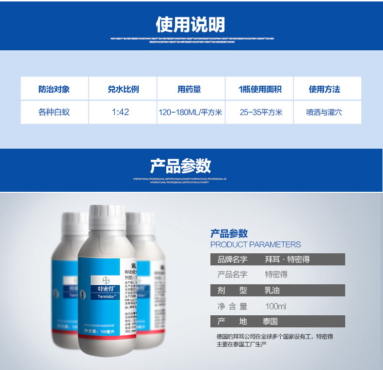 拜耳(BAYER)特密得氟虫腈100ml+针管+喷壶 拜耳白蚁药