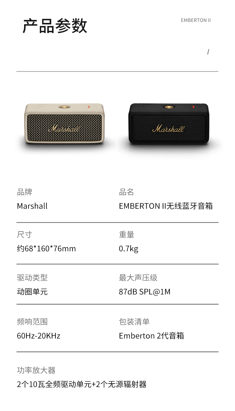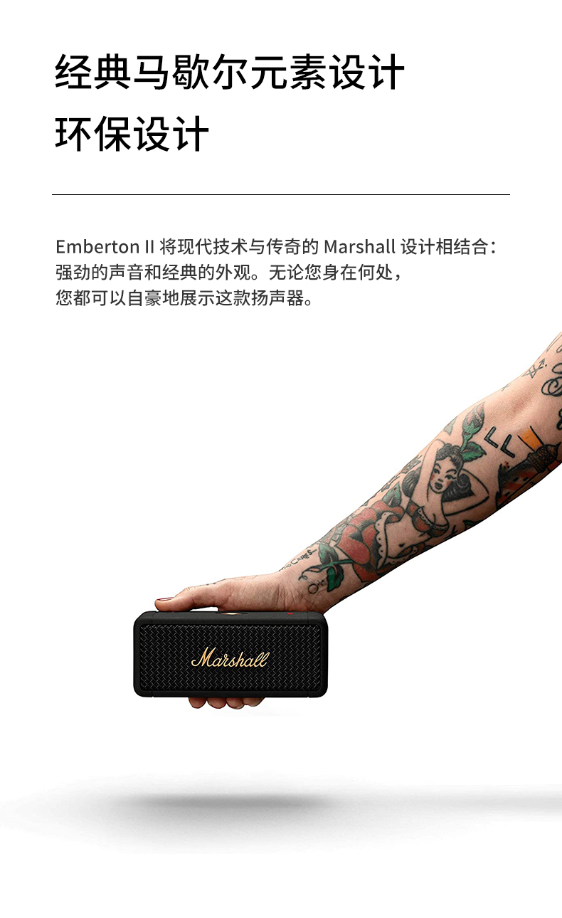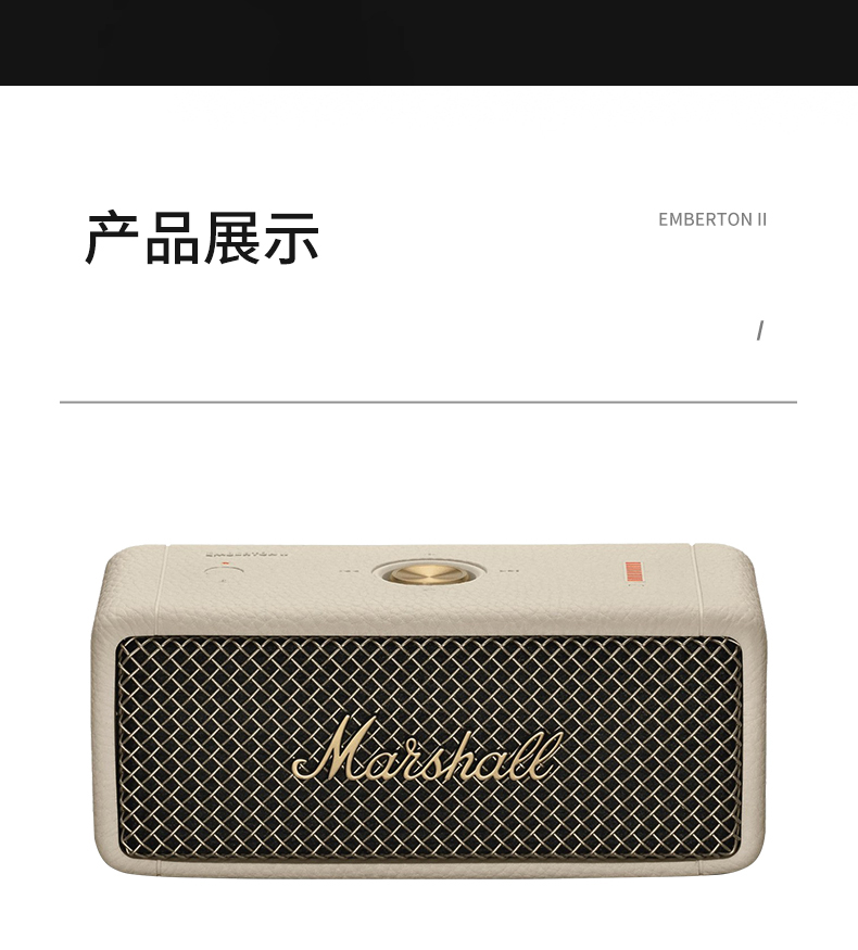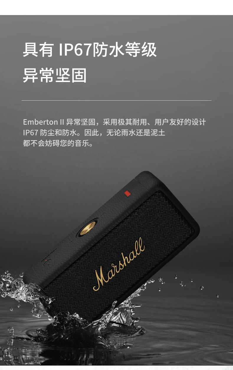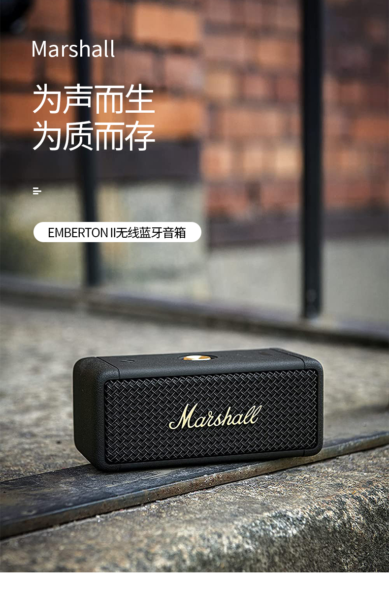 MARSHALL(马歇尔)EMBERTON II 音箱便携式2代无线蓝牙家用户外防尘防水小音响 黑金 黑金色