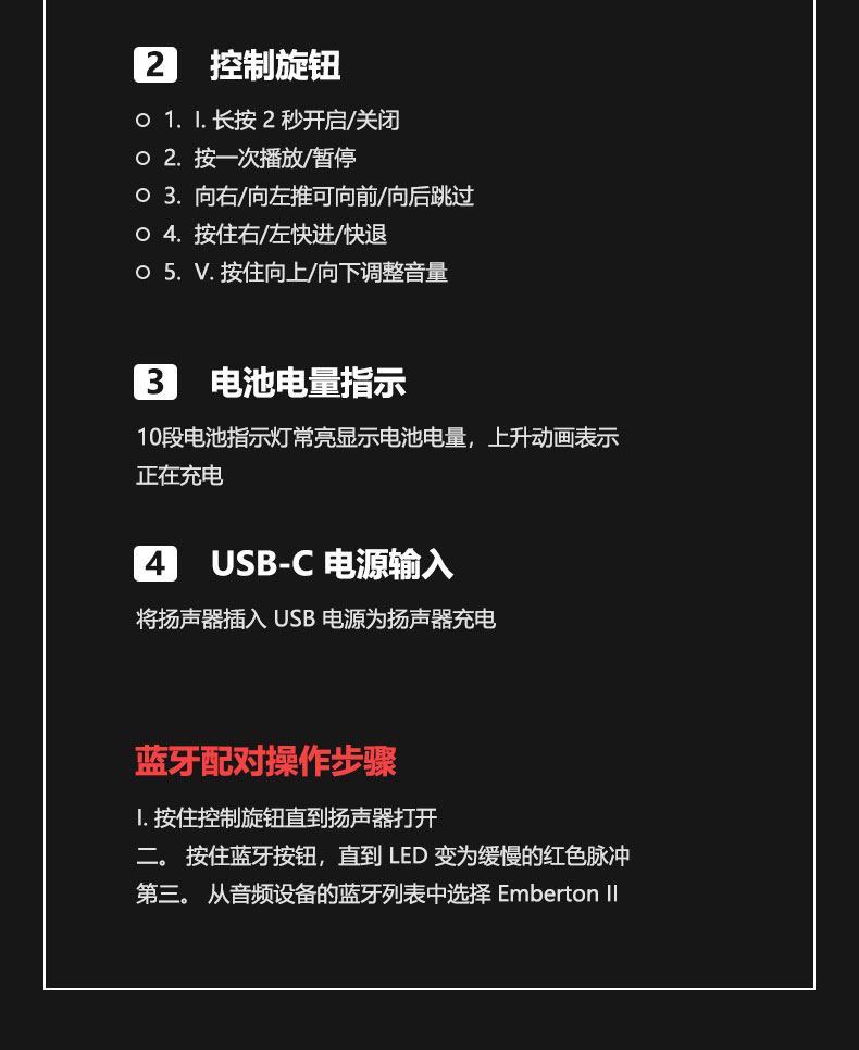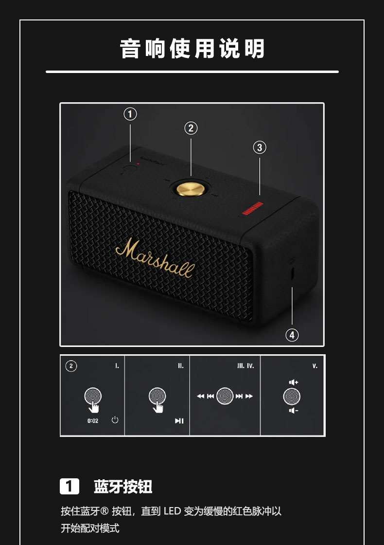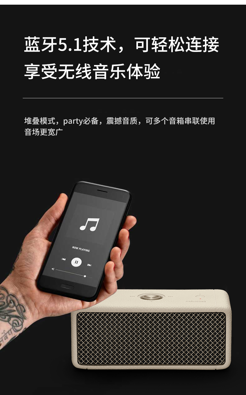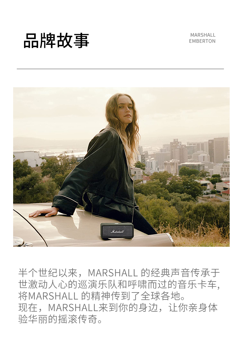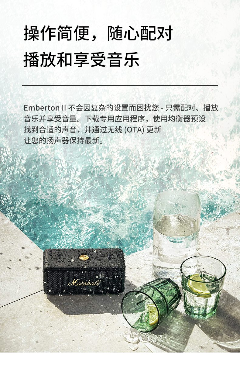 MARSHALL(马歇尔)EMBERTON II 音箱便携式2代无线蓝牙家用户外防尘防水小音响 黑金 黑金色