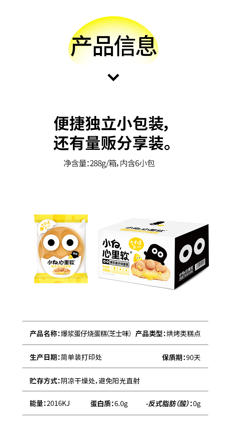 小白心里软 爆浆蛋仔烧蛋糕288g*2 麦饭石