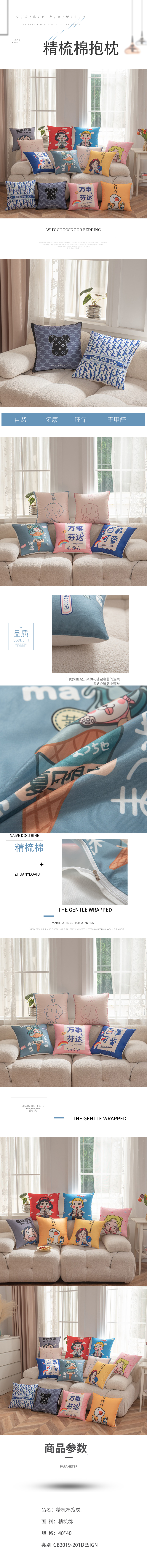 菩朵家纺 可定制精梳棉抱枕 花型混发 40*40cm (单位:个)起订量100 随机 花色