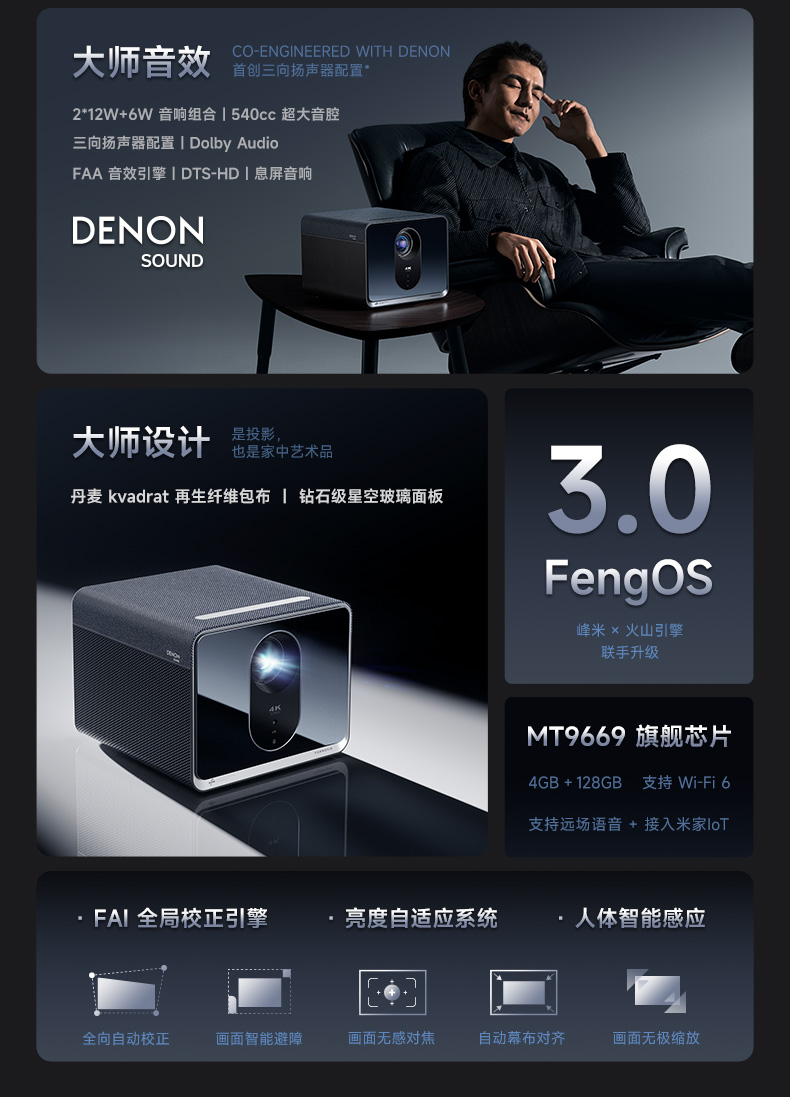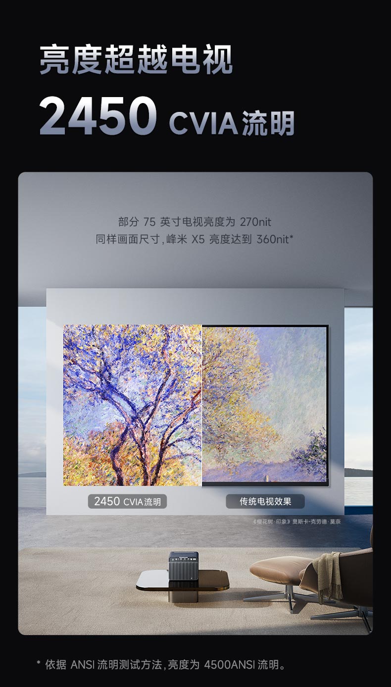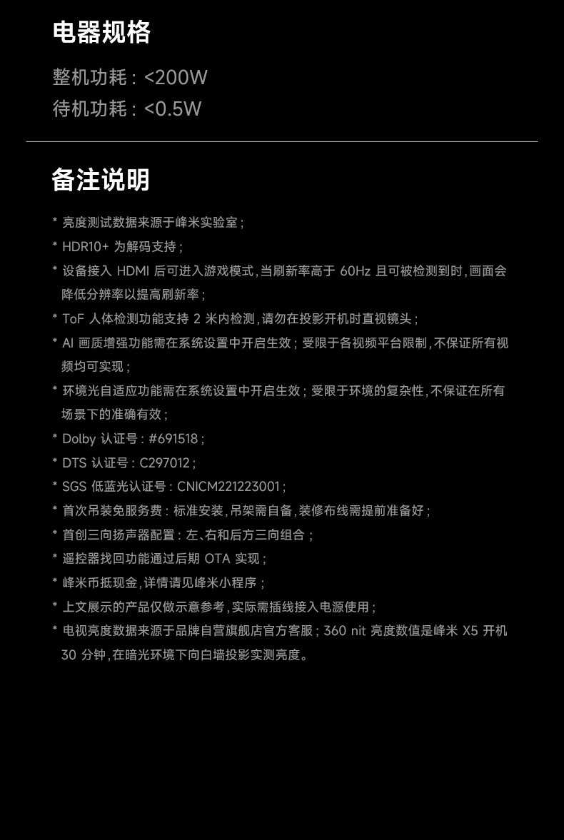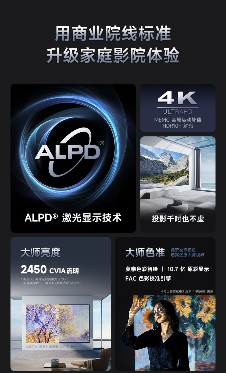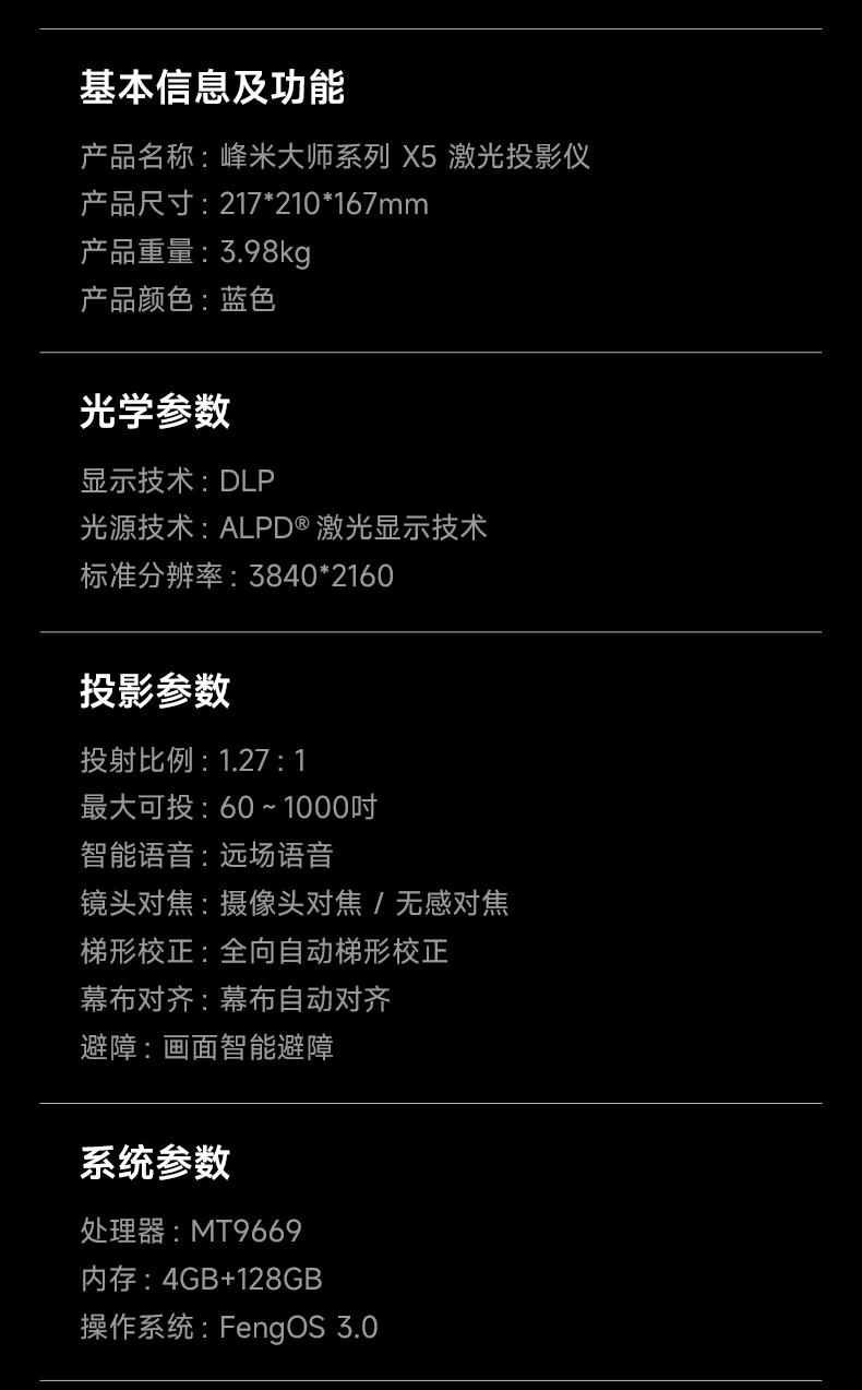 峰米 X5 4K激光投影仪 投影仪家用 浅灰色