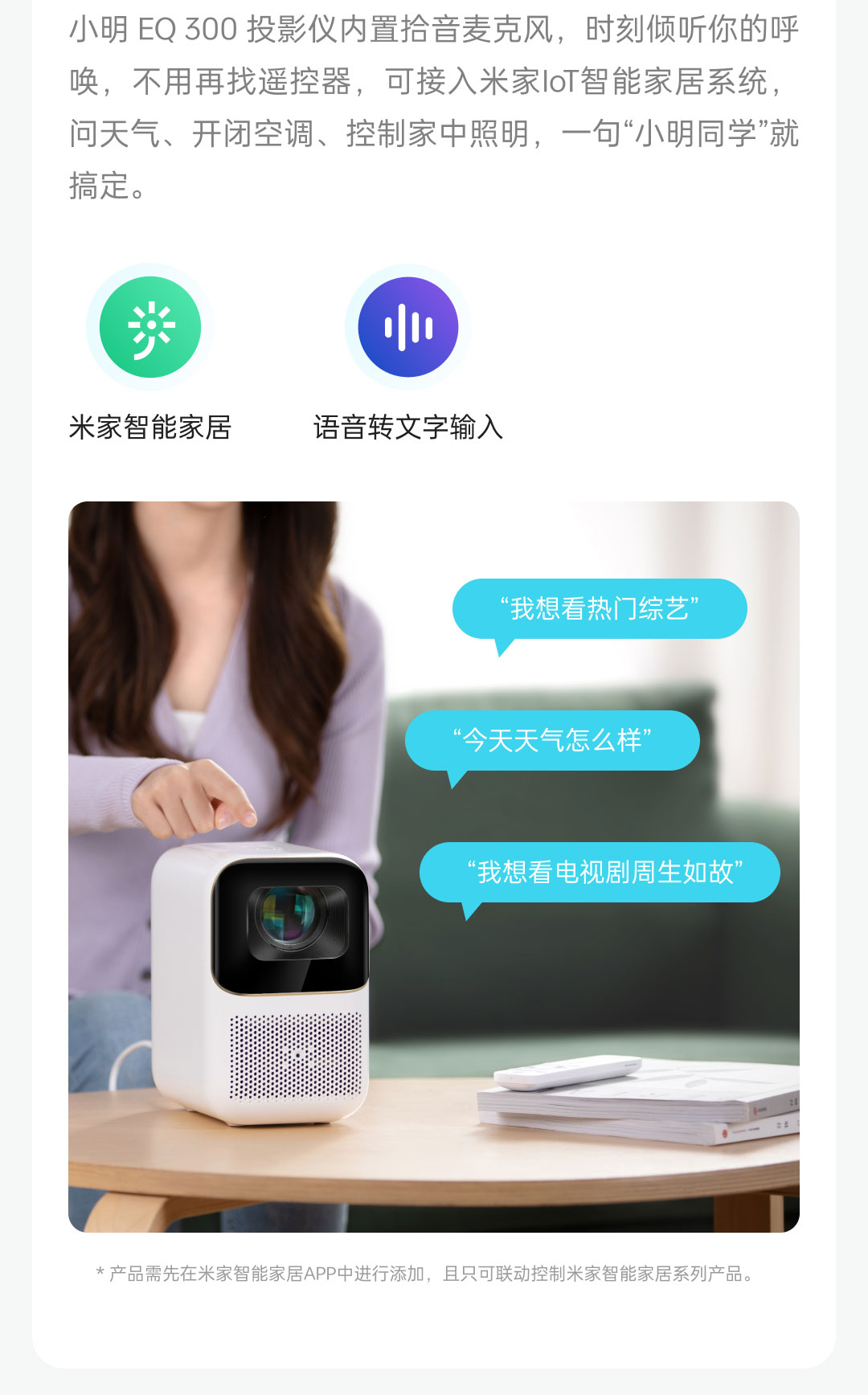 小明 EQ300 智能投影仪 白色