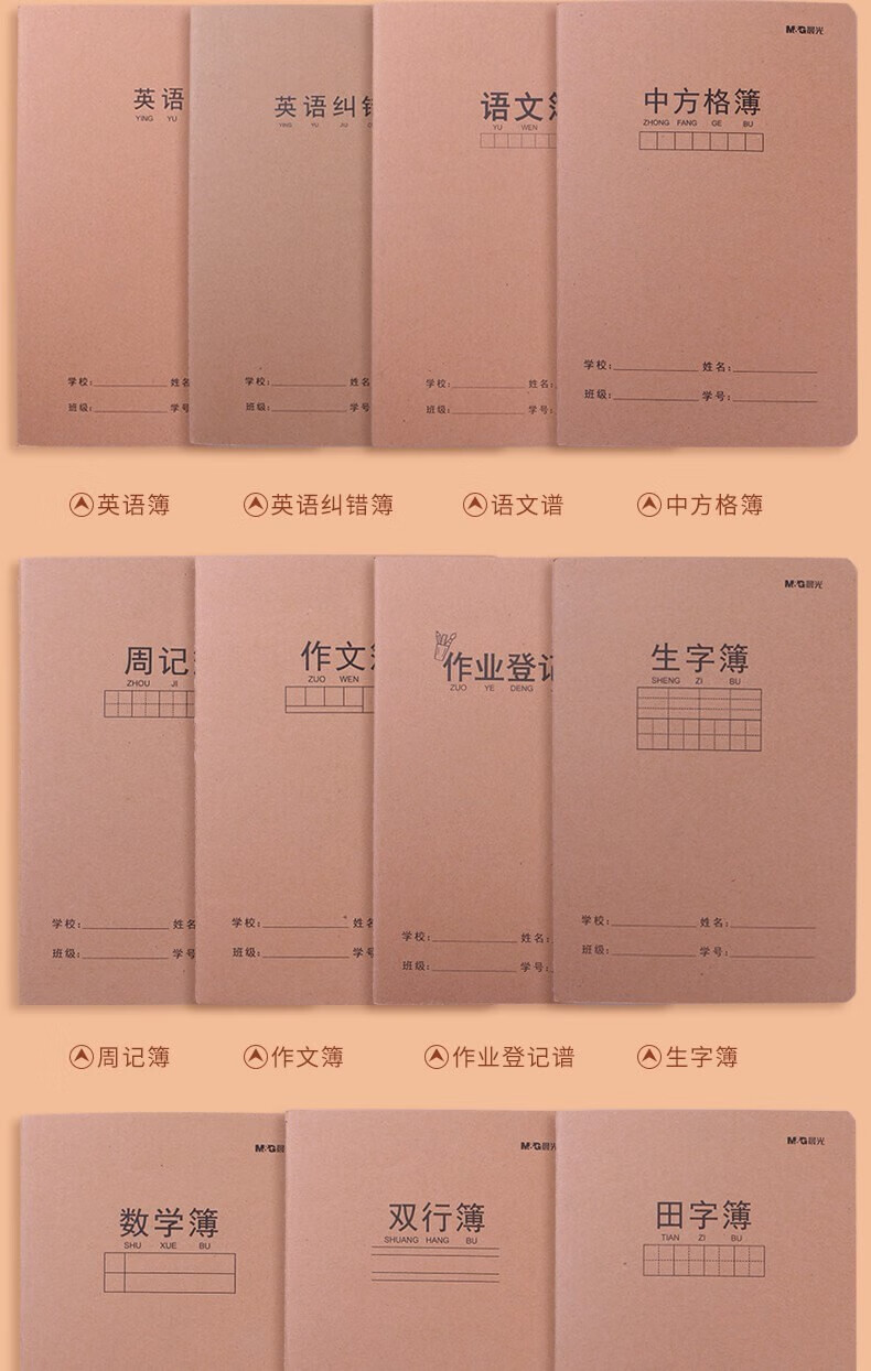 晨光文具(M&G)16K/32页缝线本 牛皮纸英语簿【英语簿】20本装 F16360C