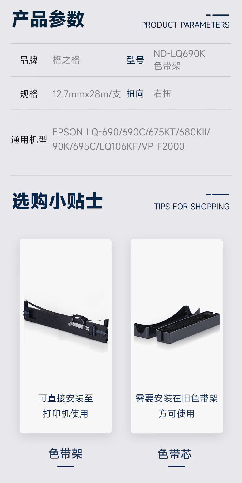 格之格 ND-LQ690K 12.7mm*30m 色带架 (计价单位:盒) 黑色
