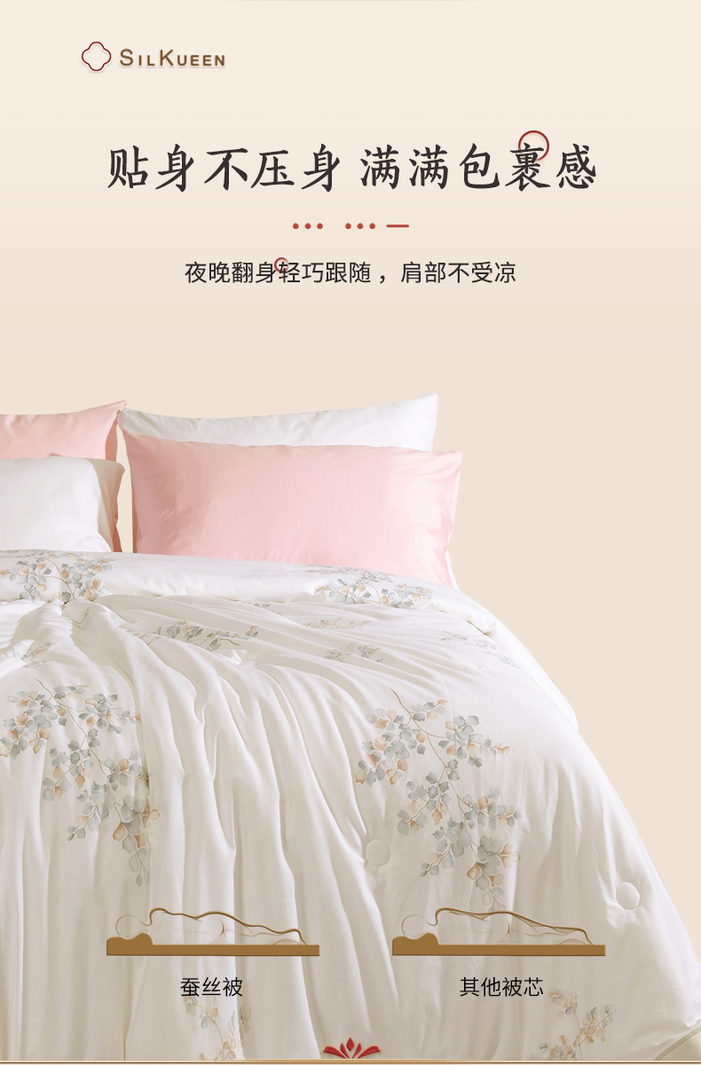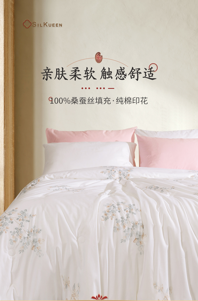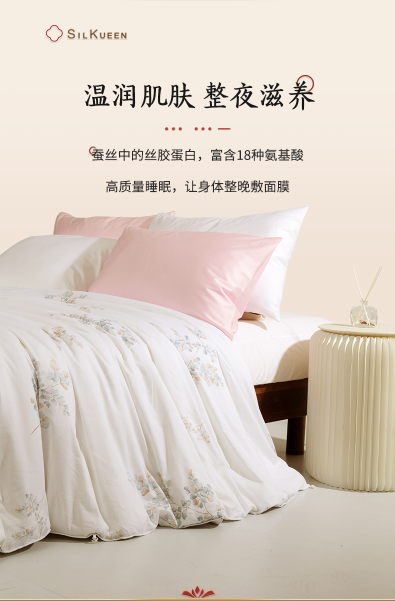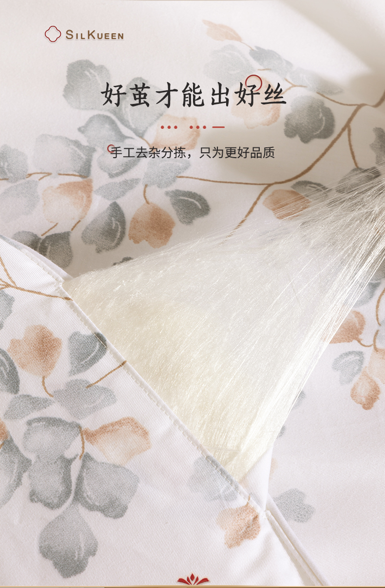 蚕花娘娘100%蚕丝被200*230cm叶语 白色 填充物1500g