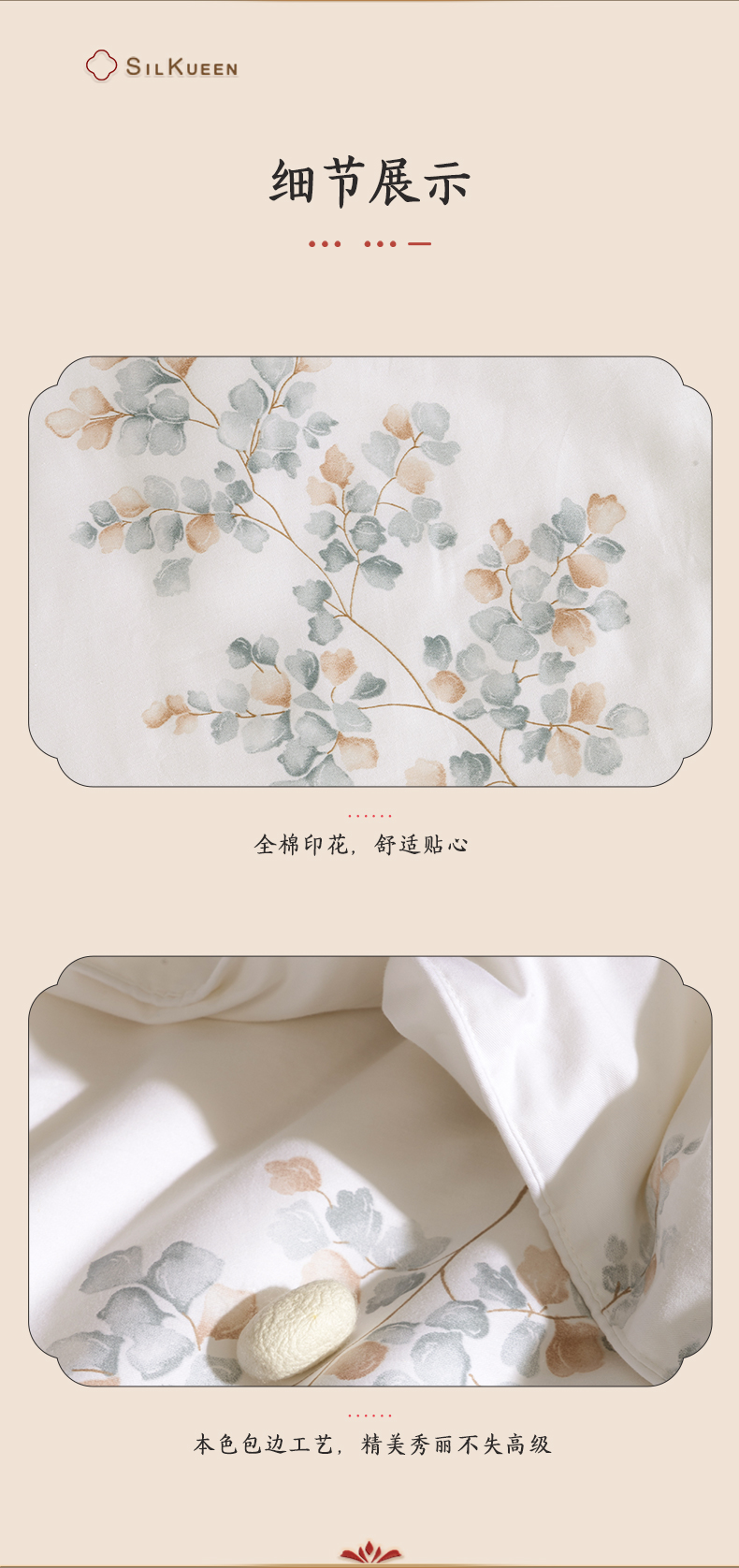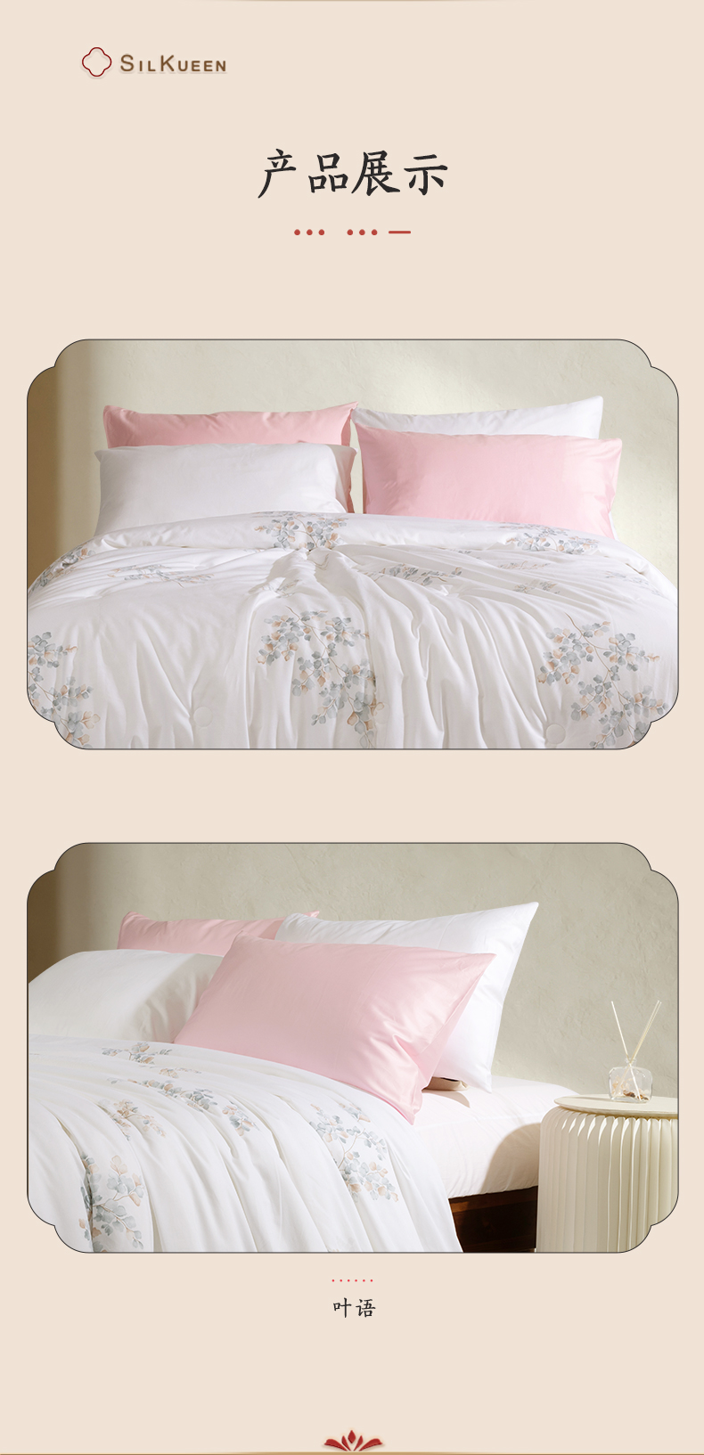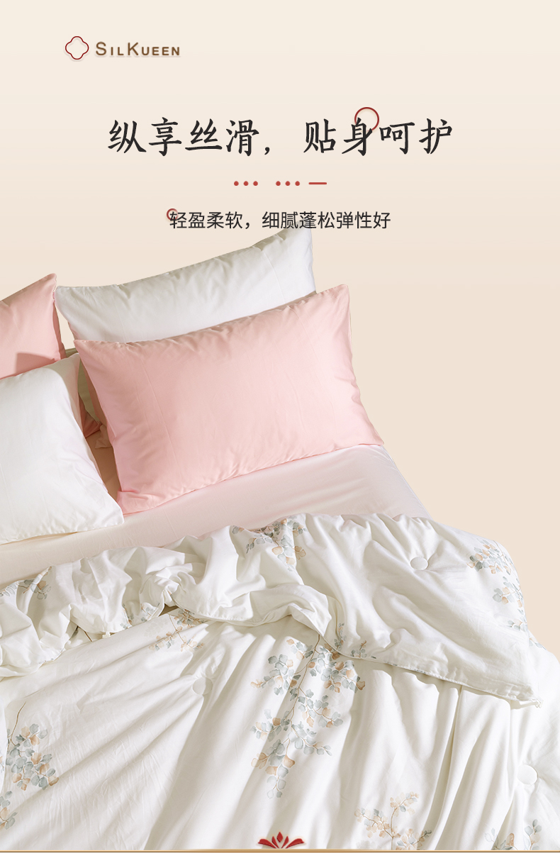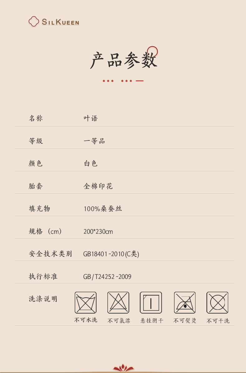 蚕花娘娘100%蚕丝被200*230cm叶语 白色 填充物1500g