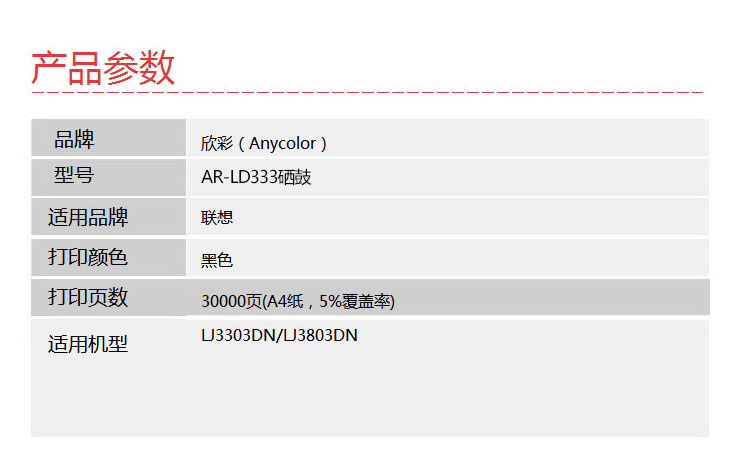 欣彩(Anycolor) AR-LD333 专业版 30000页 适用联想 LJ3303DN 硒鼓 1.00 只/支 (计价单位:支) 黑色