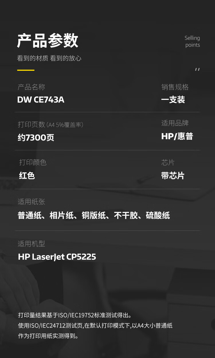帝威(DW) CE743A (带芯片)专业版(适用惠普HPLaserJetCP5225)打印量:7300页 硒鼓 1.00 只/支 (计价单位:支) 红色