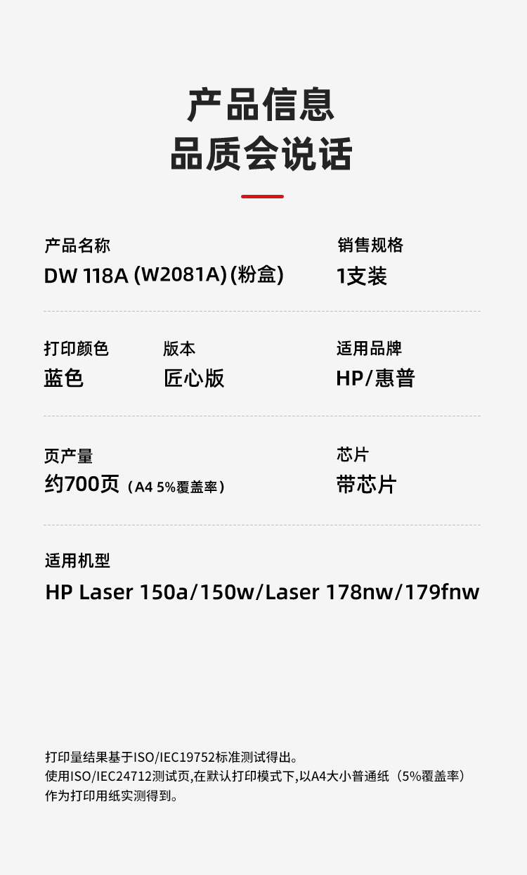 帝威(DW) 118A(W2081A) (带芯片)匠心版(适用惠普HP150a/150w/178nw/179fnw)打印量:700页 粉盒 1.00 只/支 (计价单位:支) 蓝色
