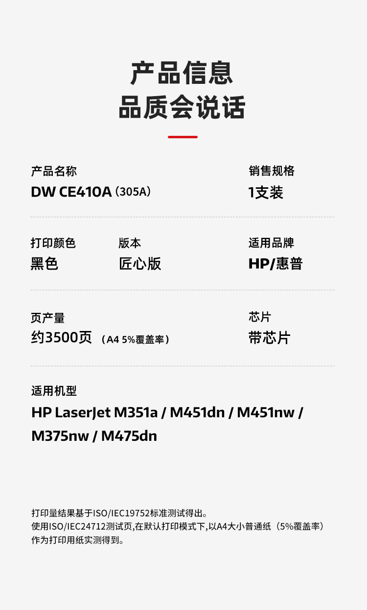 帝威(DW) CE410A(305A) (带芯片)匠心版(适用惠普HPM351a/M451dn/M451nw)打印量:3500页 硒鼓 1.00 只/支 (计价单位:支) 黑色