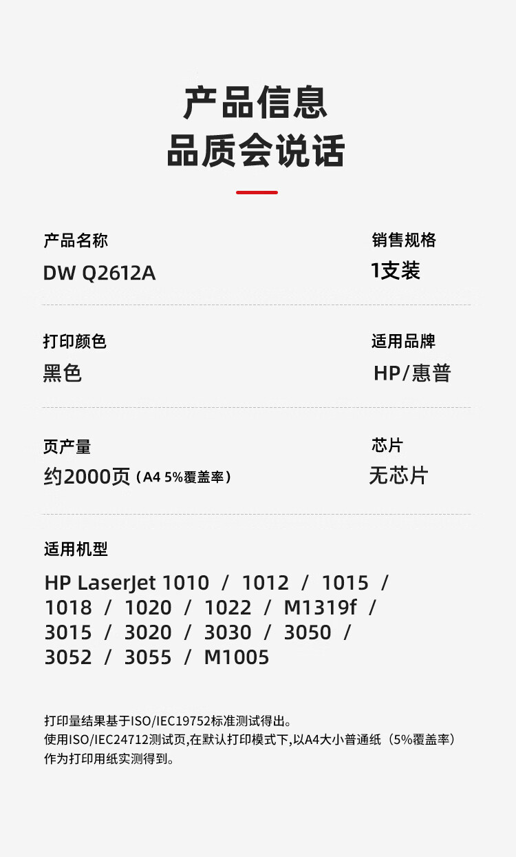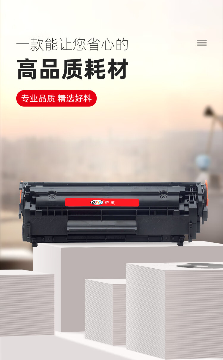 帝威(DW) Q2612A (无芯片)匠心版(适用惠普HP1010/1012/1015/1018/1020)打印量:2000页 硒鼓 1.00 只/支 (计价单位:支) 黑色