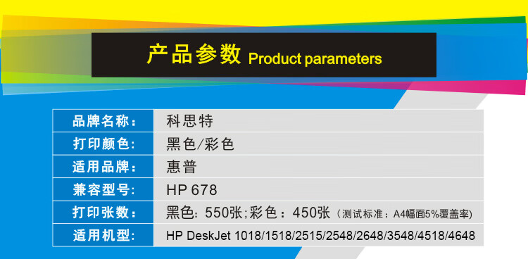 科思特 678XL 打印量450页 适用惠普DeskJet 2515 /4518 墨盒 (计价单位:盒) 彩色