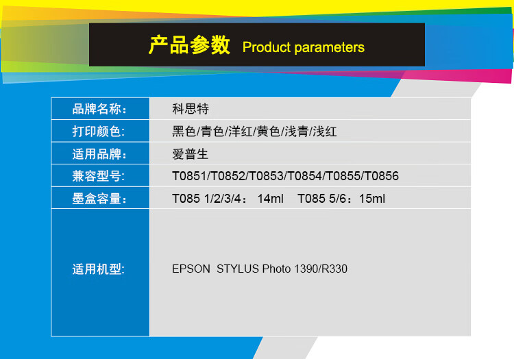 科思特 EPSON T0851 14ml 适用爱普生 R330 1390 墨盒 (计价单位:盒) 黑色